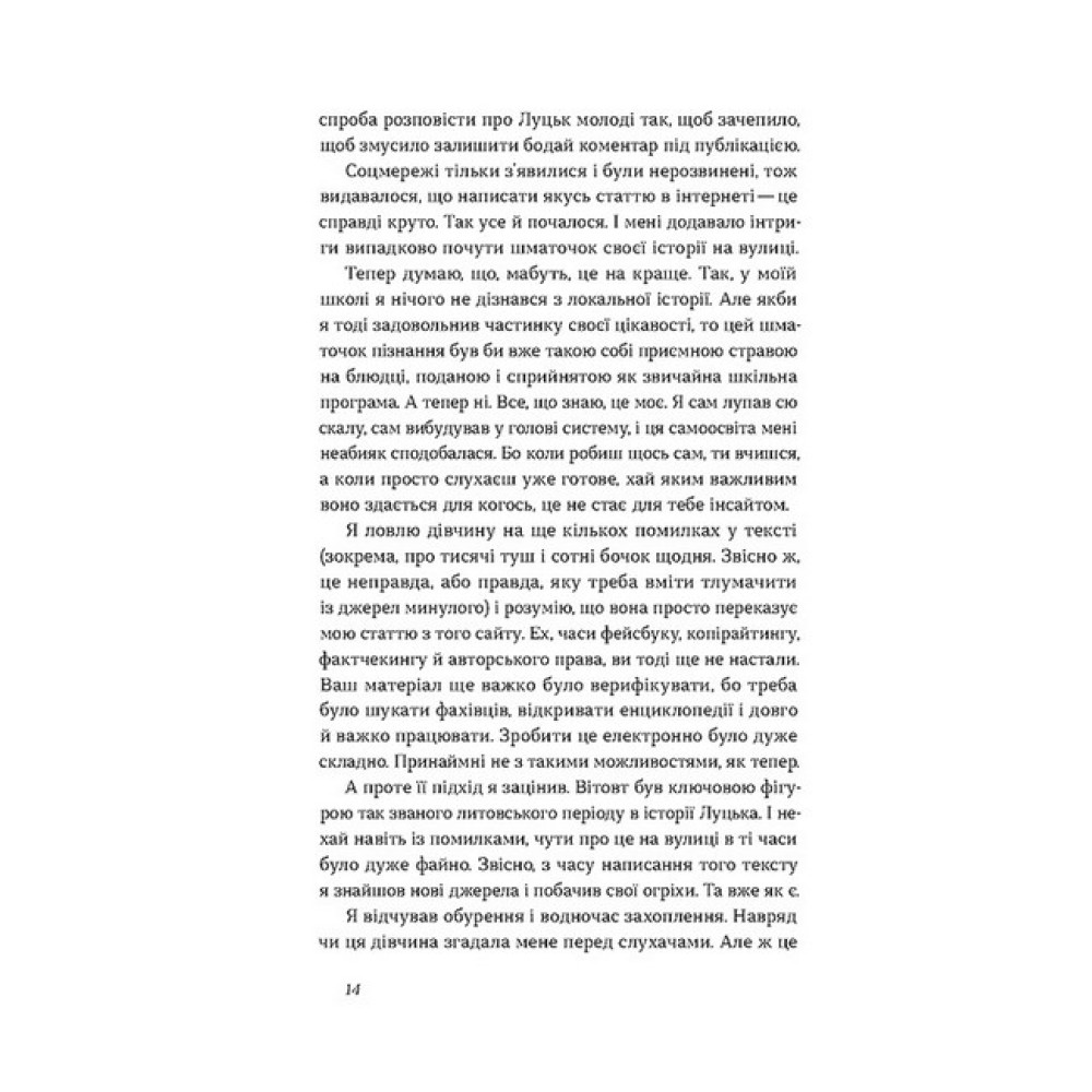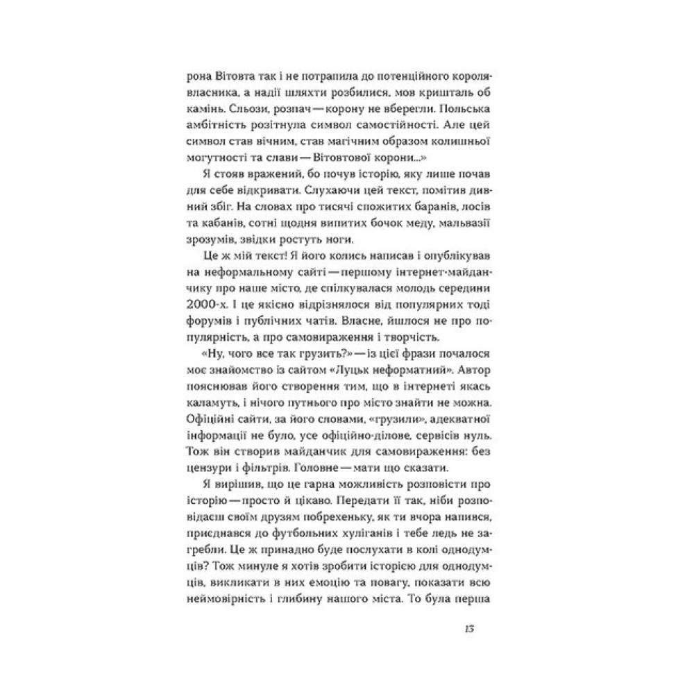 Від Любарта й Вітовта до єзуїтів, чорнокнижників, імператорів та соціалізму. Де у Луцьку шукати Нижній замок і на якій будівлі залишила свій «автограф» сестра Лесі Українки? Чому коронували ікону Луцької Богоматері та для чого виставляли сідло у вікнах монастиря?Олександр Котис у своїй книжці не просто змальовує основні віхи історії Луцька, він фактично знайомить нас із життям міста за різних часових періодів і тими, хто творив його сучасний ландшафт. Стартуючи в центрі Луцька, автор проводить нас вуличками міста, вміло балансуючи поміж легендами й історичними фактами. Він не обмежується оповідями про величні храми та замки, а водночас розповідає, якими стежками гуляли місцеві монахи та якими свого часу були особливості політики, як вигравалися битви і забудовувалося місто.Олександр Котис – популяризатор історії, начальник відділу охорони культурної спадщини Луцької міської ради. Автор книжок «Луцький модернізм», «Міжвоєнний розквіт Волині», путівника «Луцьк».
