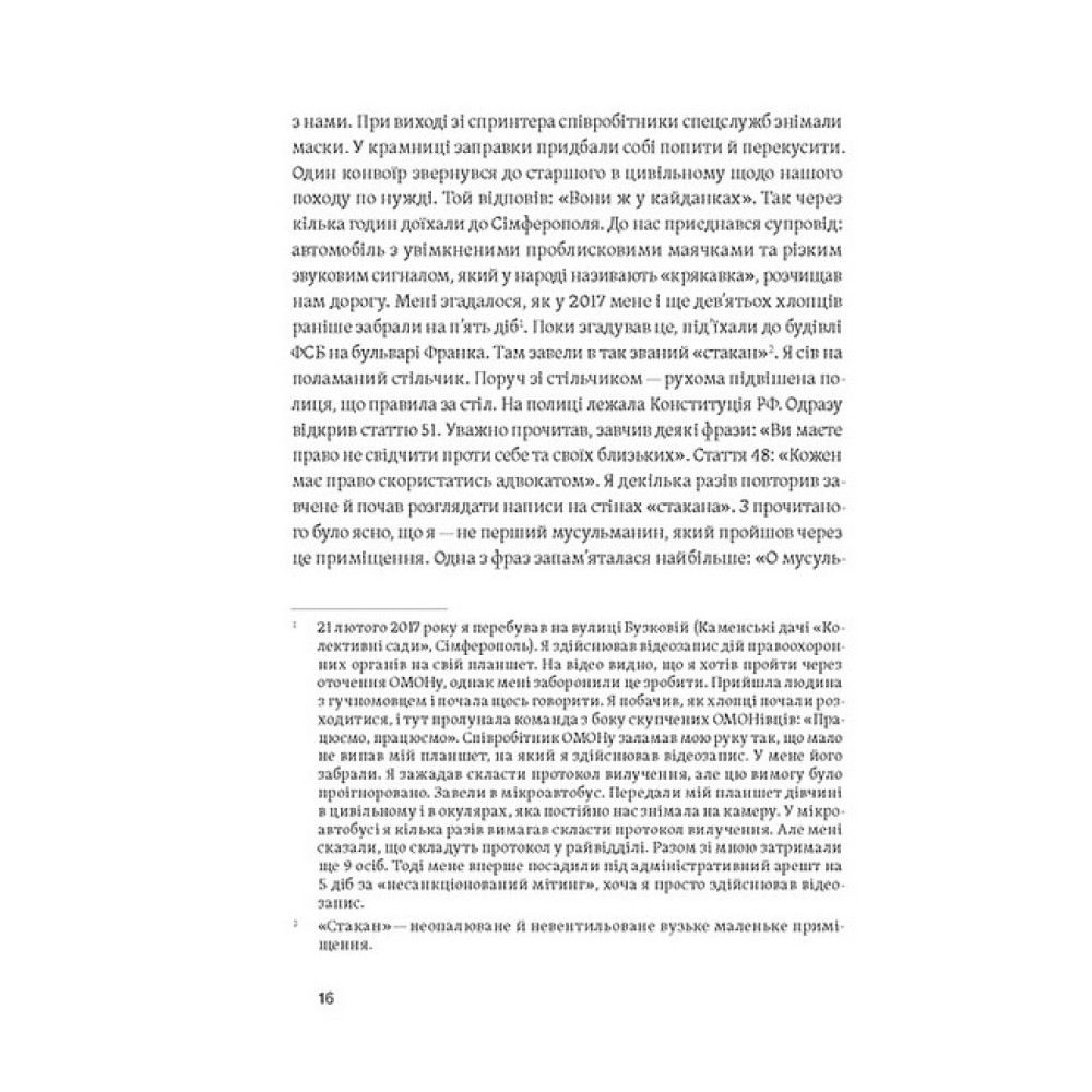 Осман Аріфмеметов — активіст, який роками висвітлював сфабриковані судові процеси в окупованому Криму. У 2019 році був незаконно ув'язнений за звинуваченням у терористичній діяльності. Разом з ним на лаві підсудних опинилася низка кримськотатарських активістів. У своєму щоденнику він змальовує численні камери й сфальшовані матеріали слідства, моральні й фізичні знущання, яким піддає ув’язнених російське «правосуддя». Попри абсурдну жорстокість обставин, у яких опинився Осман, він зберігає віру, здоровий глузд і тонку іронію, а його нотатки сповнені надії та готовності до нової боротьби за долю свого народу. Осман Аріфмеметов — математик, один з перших громадянських журналістів у Криму, член «Кримської солідарності». За звинуваченням у терористичній діяльності був затриманий росіянами та вже сьомий рік перебуває в ув'язненні.