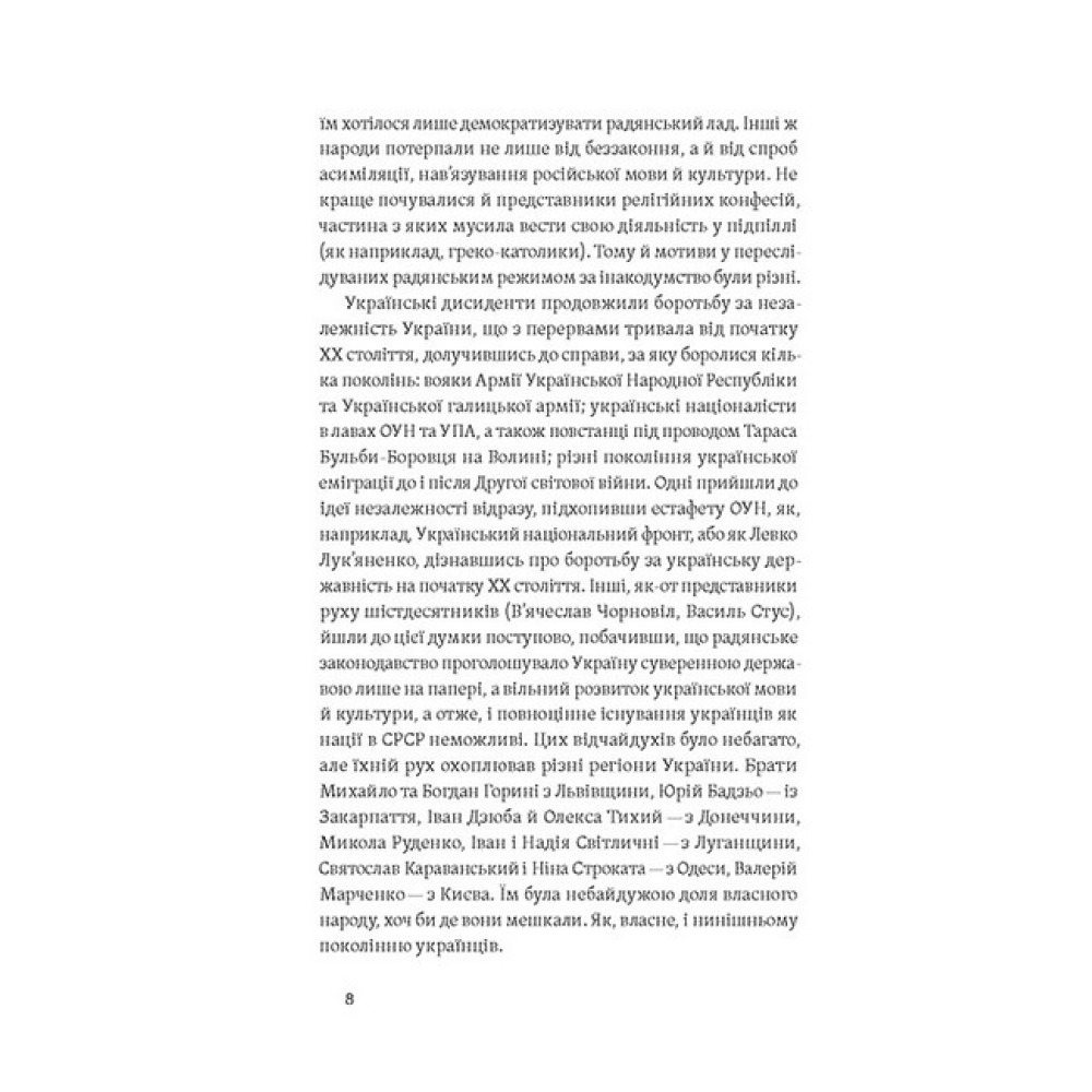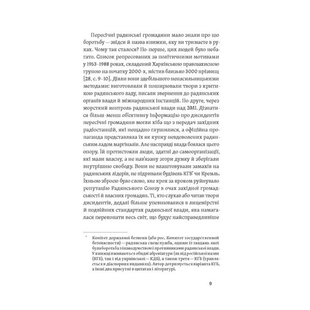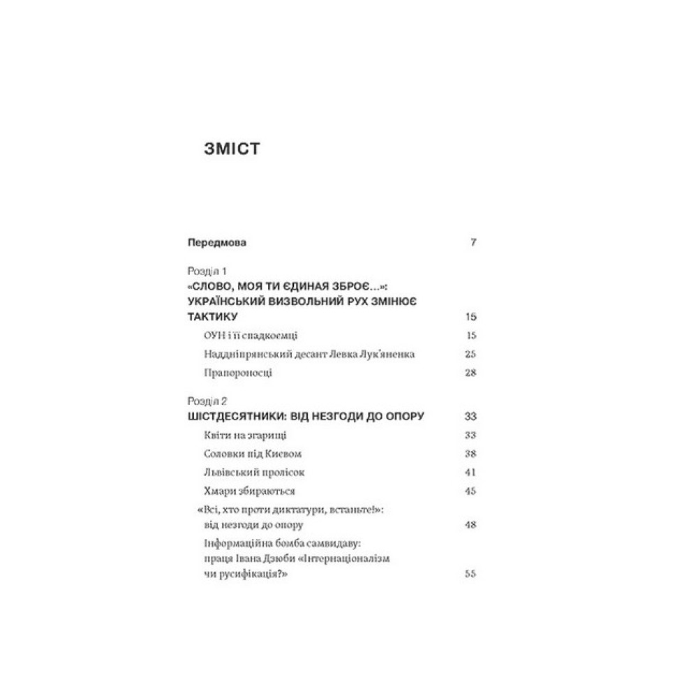 ОУН і шістдесятники, Іван Дзюба та Левко Лук?яненко, Василь Стус і В?ячеслав Чорновіл, протести, арешти й табори. У своїй книжці Роман Клочко розповідає історію дисидентів, історію українського визвольного руху, який тривав від середини 1950-х до другої половини 1980-х. Герої книжки критикували комуністичну ідеологію та боролися проти безправ’я українців як нації. Їхньою зброєю стало слово, яке дошкульно било радянський режим у його чи не найболючіше місце — монополію на інформацію. Тож режим відповідав тюрмами, таборами й психіатричними лікарнями, але повністю знищити цей опір так і не зміг. Попри всі зусилля пропаганди та фактично фізичне знищення дисидентів, вони продовжували боротися і лякати радянську владу.Роман Клочко — перекладач з англійської, зокрема «Брами Європи» Сергія Плохія, а також текстів Майкла Крайтона, Джона Стейнбека, Айзека Азімова. Автор книжок «Інша Мелітопольщина. Нарис з історії інакодумства (1953–1985)» та «Домівка для минулого. Про музеї, історію та мистецтво».