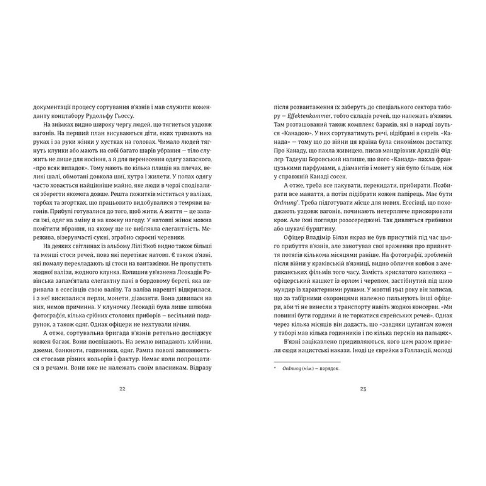 «Особисті речі. Розповідь про одяг у концтаборах і таборах смерті» польської письменниці, журналістки та культурної антропологині Кароліни Сулєй — це унікальне дослідження, присвячене життю в концтаборах через призму одягу та особистих речей, які залишалися з людьми навіть у найжорстокіших умовах.Авторка розповідає про значення одягу для тих, хто був позбавлений гідності, людських прав і навіть свого імені, показує одяг як символ боротьби за власне «я». Ґрунтуючись на архівних матеріалах, інтерв'ю з тими, хто пережив табори, та історичних джерелах, Кароліна Сулєй піднімає тему людської гідності, ідентичності, тілесності та культури, а також взаємодії людей з матеріальними речами в надзвичайних обставинах. «Особисті речі» — це зворушливий і водночас глибокий погляд на історію, де одяг стає свідком страждань, боротьби і внутрішньої сили.