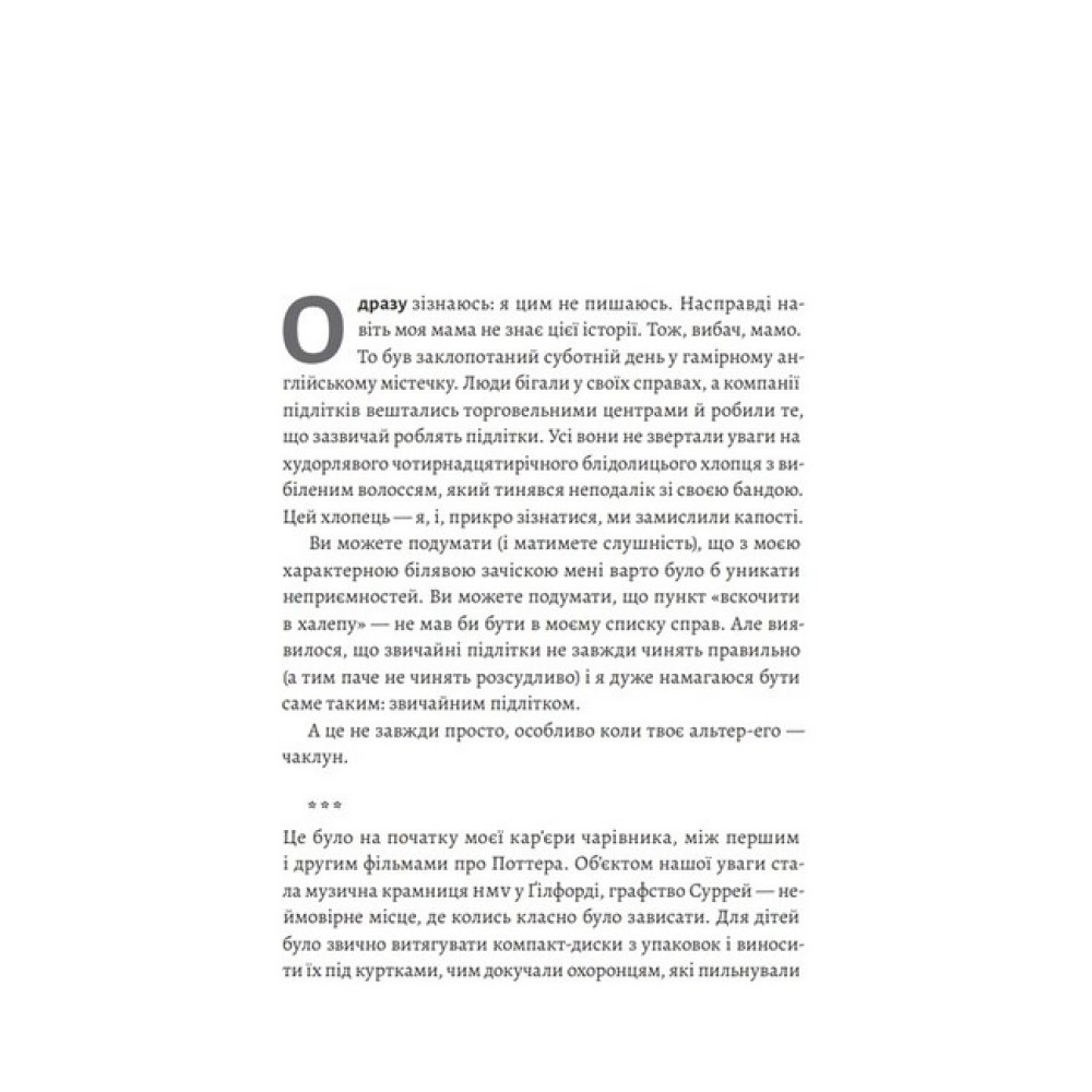 Дитинство Тома Фелтона було зовсім не звичайним. У дванадцять років він опинився в центрі уваги, коли отримав культову роль чарівника Драко Мелфоя у фільмах про Гаррі Поттера. У книжці «По той бік чарівної палички» він відверто та з фірмовим гумором розповідає історії про свої перші прослуховування та ролі, про те, як отримав роль Драко, про пригоди на знімальному майданчику «Поттеріани» і про людей, з якими потоваришував за десять років зйомок фільмів. Також Том Фелтон розмірковує про переваги й недоліки слави та про те, як було складно зорієнтуватися у дорослому житті після закінчення зйомок. «По той бік чарівної палички» Тома Фелтона — кумедна та зворушлива книжка, яку варто прочитати кожному фанату Гаррі Поттера. Чому варто прочитати?Книга, що дає можливість зазирнути за лаштунки життя Тома Фелтона — від архівних моментів на знімальному майданчику в ролі Драко Мелфоя до викликів дорослішання в центрі уваги.Том Фелтон розповідає про злети та падіння у світлі слави та пошук шляхів у житті після такого важливого і доленосного досвіду.У книзі Фелтон розмірковує про свій досвід роботи з такими великими зірками, як Алан Рікман, сер Майкл Ґембон, дама Меґґі Сміт і Ральф Файнс (включно з обіймами Волдеморта). Про автора: Том Фелтон — англійський актор, найвідоміший за роль Драко Мелфоя у фільмах про Гаррі Поттера. Він також грав у стрічках «Повстання планети мавп», «Бель», «Флеш», «Об’єднане Королівство», «Забута битва» та у п’єсі «2:22. Історія про привида» у лондонському Вест-Енді. Живе у Лондоні з собакою Віллоу.