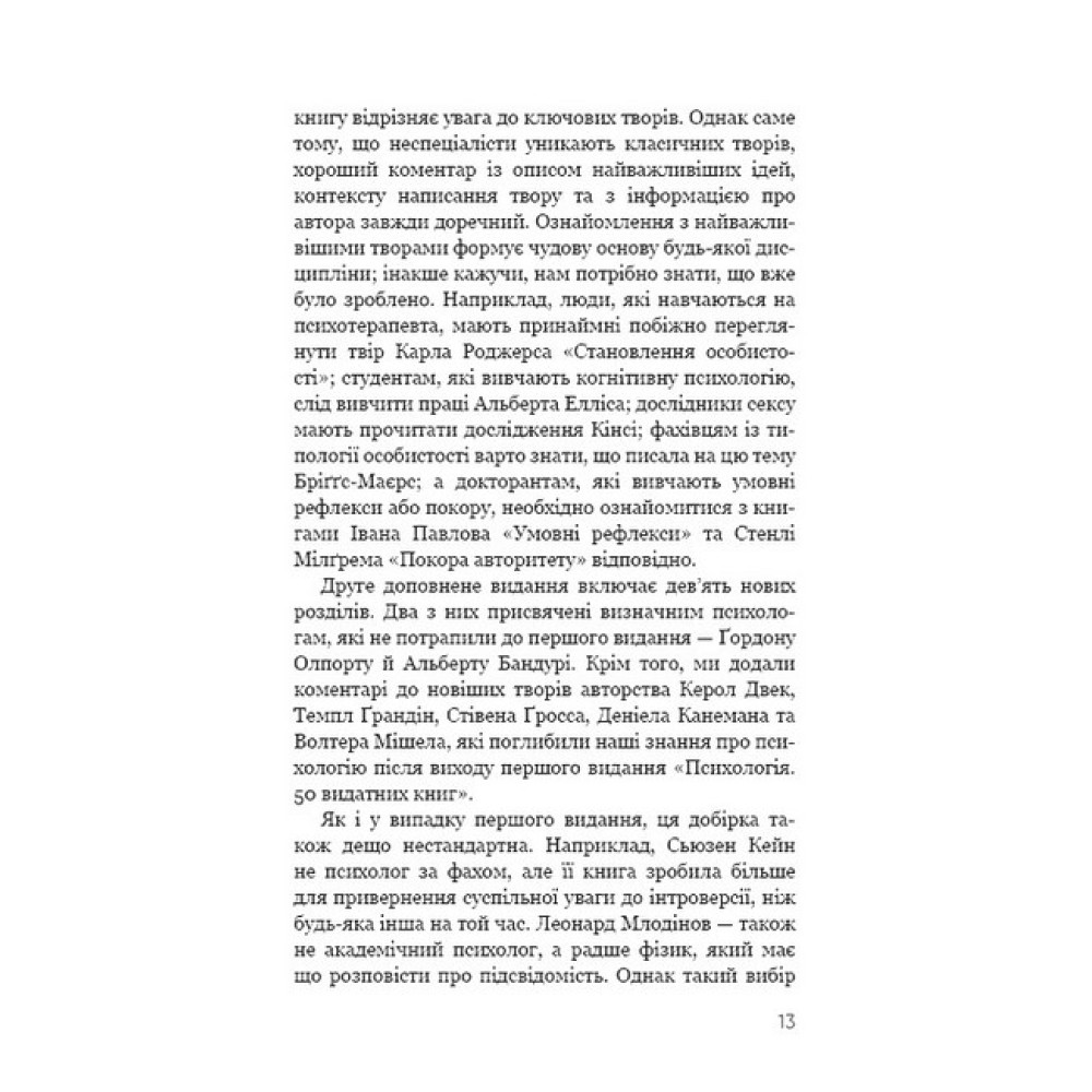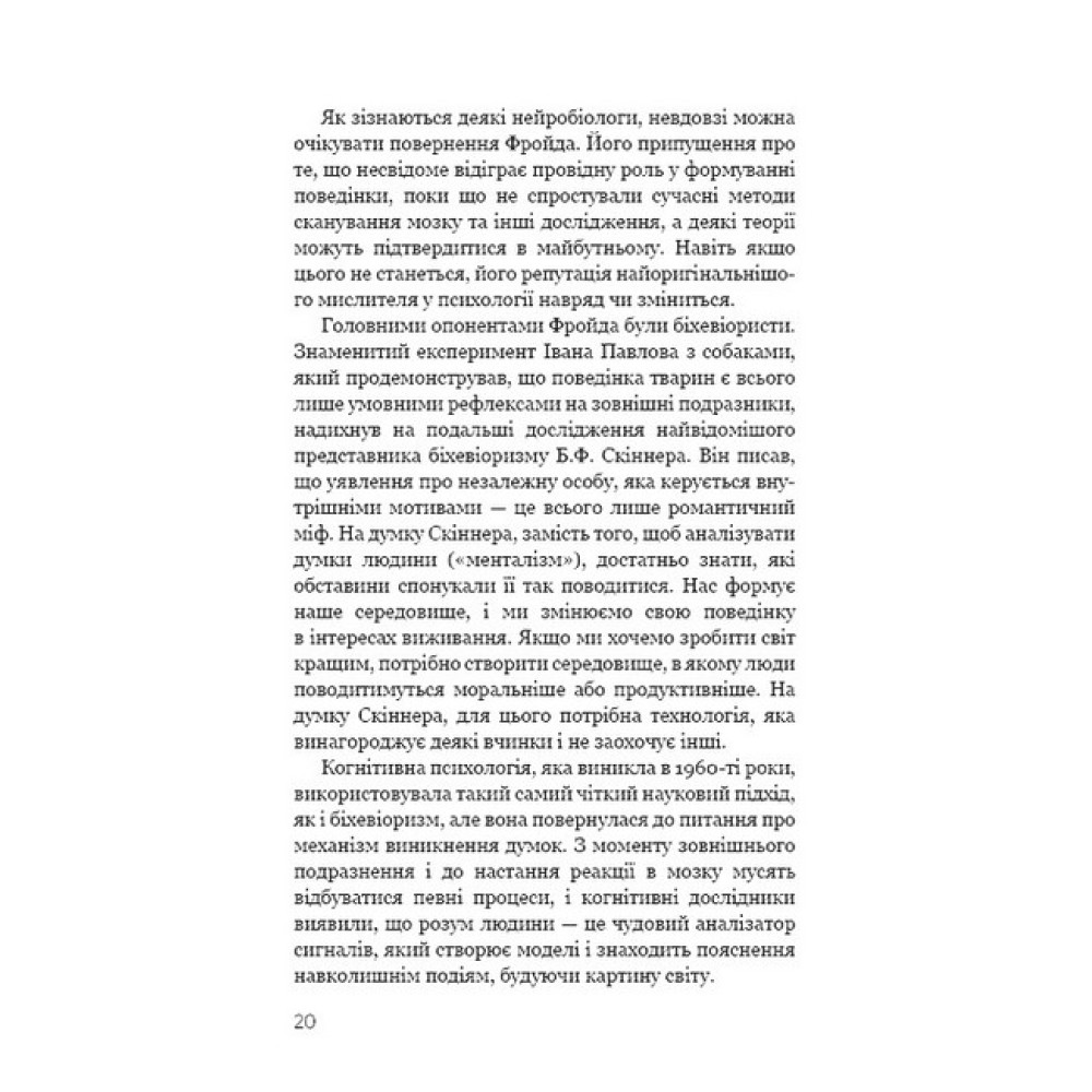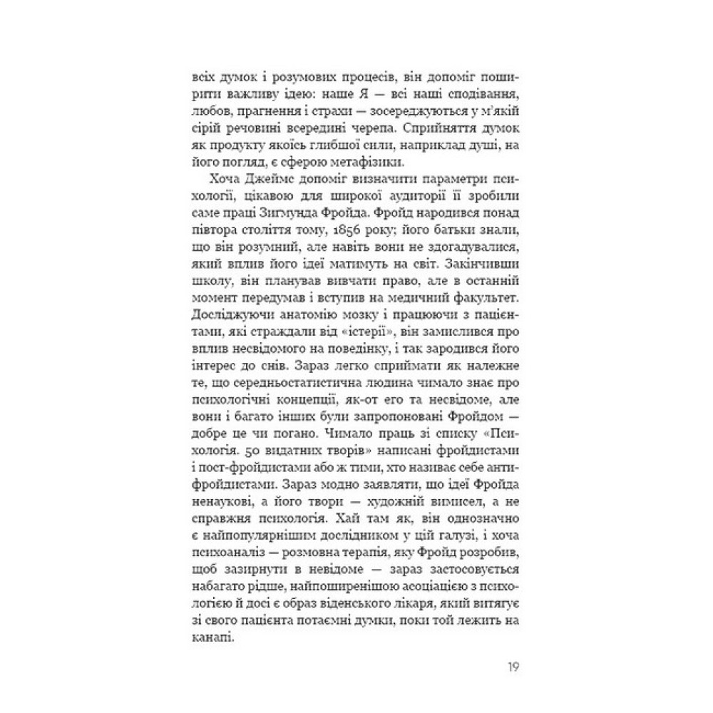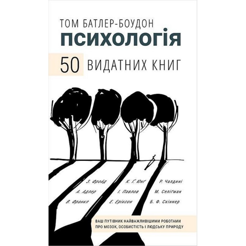 Том Батлер-Боудон — відомий у всьому світі популяризатор науки — під однією обкладинкою зібрав основні ідеї, концепції та методики різних напрямків психології. 50 книг найвидатніших психологів — від Зиґмунда Фройда й Карла Ґустава Юнґа до Деніела Канемана й Керол Двек — він переказав доступною мовою, зумівши на кількох сторінках викласти зміст твору, передати основну думку та прокоментувати його вплив на розвиток науки. Книга Тома Батлер-Боудона допоможе скласти уявлення про різні галузі психології, визначити напрямок, який цікавить вас найбільше, й підкаже, які книги варто прочитати, щоб глибше зануритися в захопливі глибини «науки про душу».