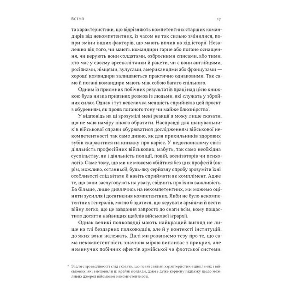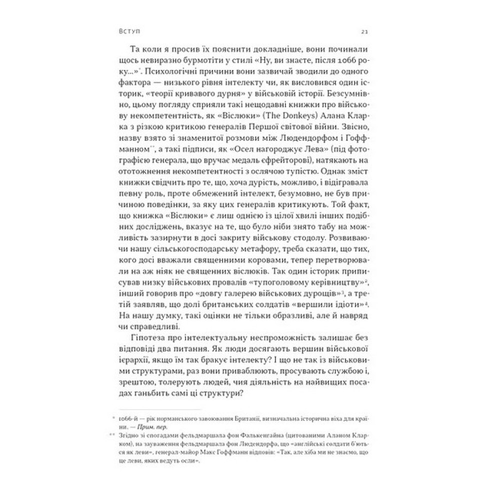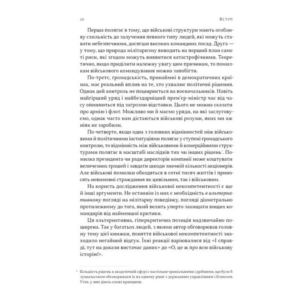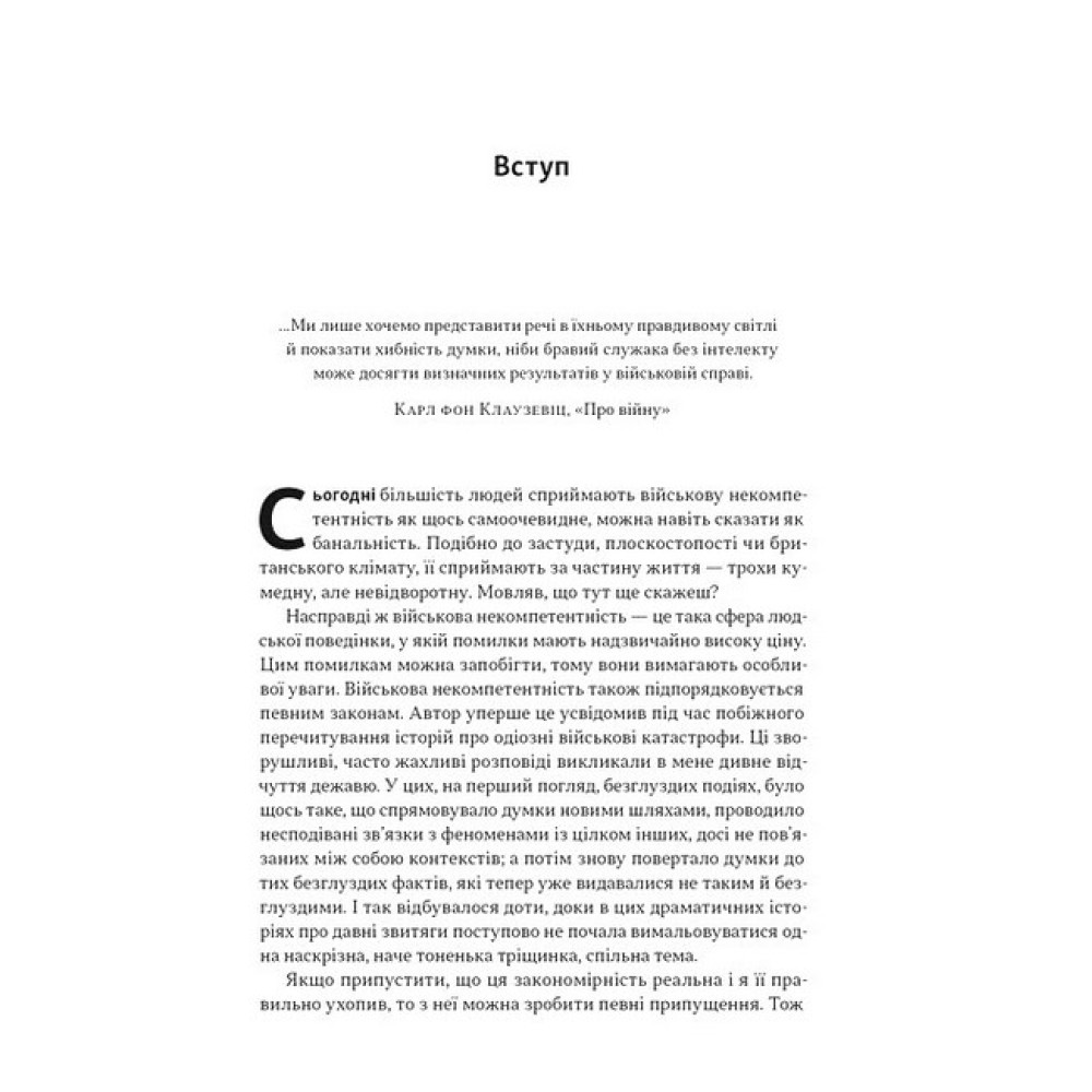Чому навіть найкращі армії світу раз за разом повторюють фатальні помилки? Норман Діксон розкриває глибинні механізми військових провалів — від наполеонівських кампаній і Кримської війни до битв обох світових воєн та конфліктів другої половини ХХ століття.Аналізує ключові пастки розуму та психологічні фактори провалів: упередження, страхи, надмірну самовпевненість командирів.Розкриває, як організаційна культура армій сприяє ухваленню катастрофічних рішень, винагороджуючи конформізм замість компетентності.Показує універсальність проблеми на багатьох зрозумілих для будь-якої країни та армії прикладах.Книжка актуальна для сьогодення, адже пояснює, як ігнорування історичних уроків коштує мільйонів життів, або чому «триденна спецоперація» перетворюються на роки війни. Це не лише аналіз минулих поразок, а й інструмент для майбутніх перемог — як для військового командування, так і для лідерів у політиці, бізнесі та інших сферах.