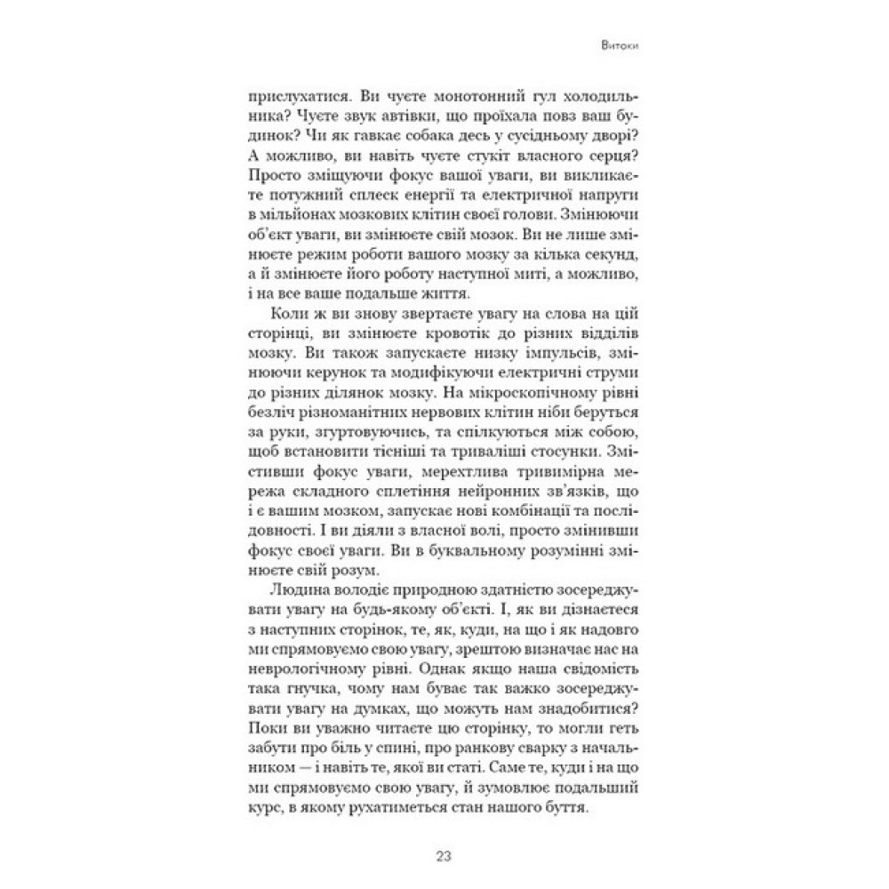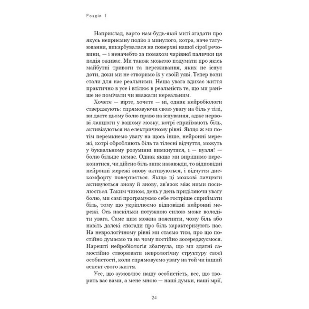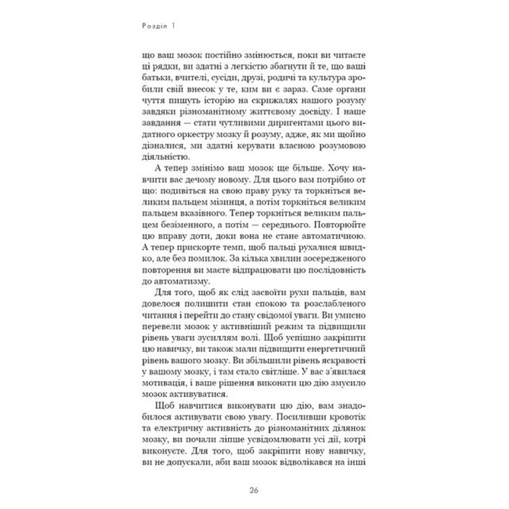 Іще нещодавно в науці панувала думка, що мозок має чітко організовані структури, ми народжуємося з обмеженим числом нейронів, а пошкоджені нервові клітини не відновлюються. Тепер ці переконання здаються сумнівними. Сучасна нейробіологія стверджує: наш мозок змінюється протягом усього життя — у відповідь на кожен життєвий досвід, кожну нову думку і кожну інформацію, яку ми засвоюємо.Доктор Джо Диспенза — професор нейрохімії і нейробіології, пропонує просунуту програму з налаштування мозку, тіла і життя. У книзі «Розвивай свій мозок» наведено зразки мисленнєвих тренувань через медитацію, зазначено, як користатися свідомим розумом разом із підсвідомим і як оновити операційну систему мозку. Від бажання змінитися до зміни себе нас відмежовує лише наша уява.