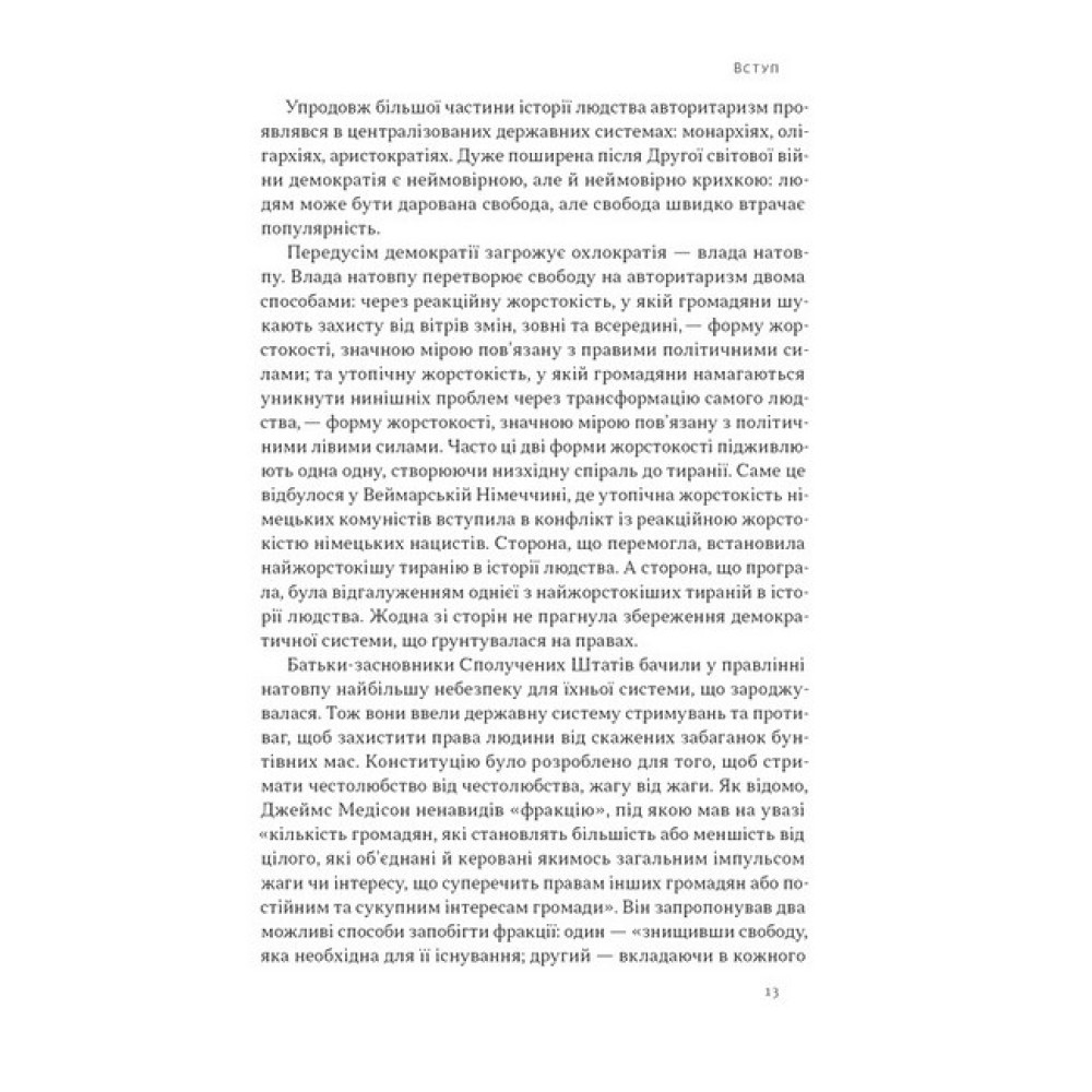 «Культура скасування» стала звичною частиною сучасного життя в країнах Заходу. В ім’я прогресу, рівності, толерантності та справедливості все більше слів, ідей, наукових досліджень і поглядів оголошуються єретичними. Іноді аргументовано, та зазвичай імпульсивно інтернет-натовпи в соцмережах тиснуть на всіх, хто сміє піти проти панівних ліволіберальних ідей. Усе це — прояви «лівого авторитаризму».Творцями, осередками і трансляторами лівого авторитаризму стали прогресистські політичні еліти, більшість провідних американських медіа, університетів та академічних кіл, спортивних зірок і представників креативних індустрій. Жорстка цензура проникла майже в усі сфери життя — від соцмереж до роботи корпорацій. Водночас посилення лівого авторитаризму все сильніше розхитує маятник поляризації суспільства, сприяє формуванню радикальніших «правих» поглядів та реакціонерських рухів, знищує точки дотику між людьми.Ця книжка висвітлює історію та пояснює небезпеки лівого авторитаризму. Завдяки їй ви краще зрозумієте, як десятиліття кенселінгу та навішування ярликів з боку лівих призвели до нищівних поразок демократів США у 2024 році, хитнувши маятник політичного вибору в зовсім інший — але не менш авторитарний — бік.