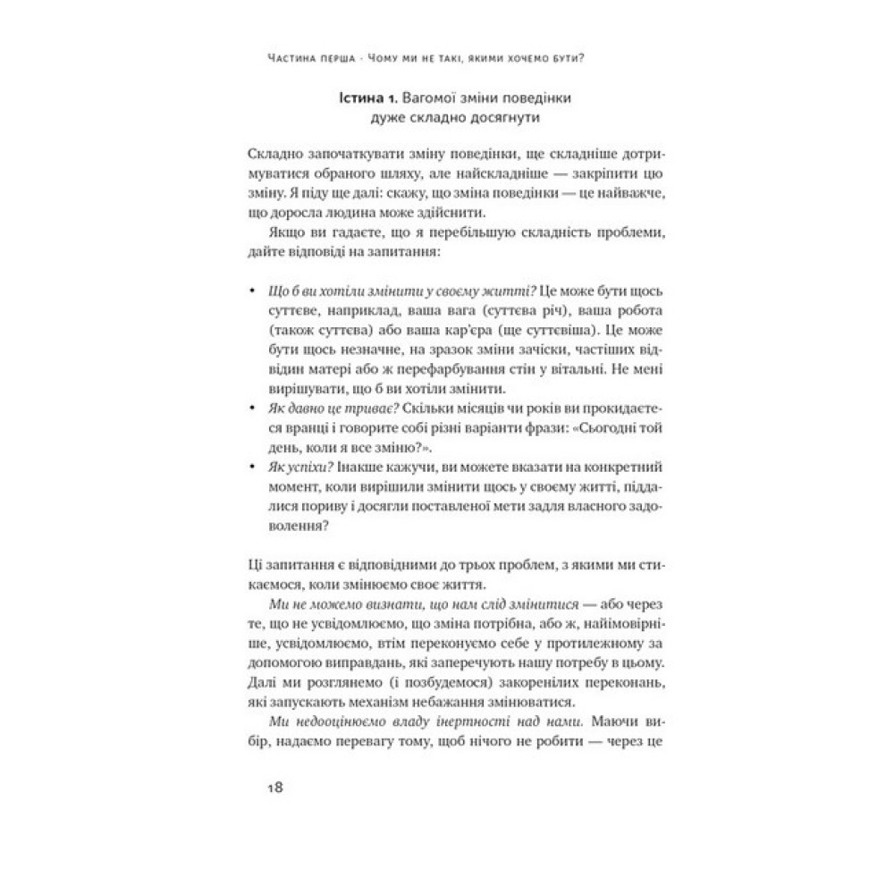Автор | Маршалл Ґолдсміт, Марк Рейтер Рік 2023 Мова Українська Жанр Прикладна психологія, Саморозвиток, особисте зростання 390 ? КупитиВсе про “Тригери. Сформуй звички і стань тим, ким хочеш бути” Від видавця Маршалл Ґолдсміт і Марк Рейтер у своїй книзі «Тригери. Сформуй звички і стань тим, ким хочеш бути» ставлять питання, а чи уявляли ви колись «себе ідеальних» та робили щось для втілення? Ви, певне, хотіли присвятити час рідним або почитати фахову книжку, але вже півтори години граєте в ігри на консолі чи гортаєте стрічку в смартфоні. Давно мріяли схуднути, але все одно їсте щось на ніч. Все через те, що наше середовище постійно відвертає нас ж від мети так званими тригерами — речами, які викликають нейрони в мізку і привертають до себе основну увагу. Як перемкнутися зі спокуси на бажану дію, а потім перетворити це на звичку, розкриє зміст цього бестселера за версією The New York Times і Wall Street Journal.Про авторів:Маршалл Ґолдсміт — коуч багатьох успішних топ-менеджерів США й відомий бізнес-експерт, що входить до 50 найвпливовіших фахівців із менеджменту. Видав кілька книжок, що були перекладені більш як тридцятьма мовами й опубліковані загальним накладом у два мільйони примірників.Марк Рейтер — американський письменник, літературний агент, бізнес-тренер, фахівець з психології особистості, управлінського менеджменту й бізнесу тощо. Рецензії 0 Всі характеристики ВидавництвоНаш Формат |