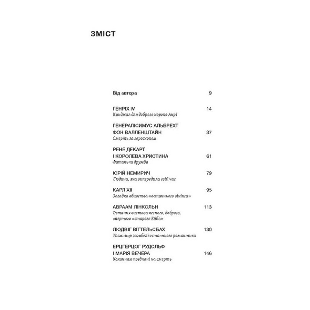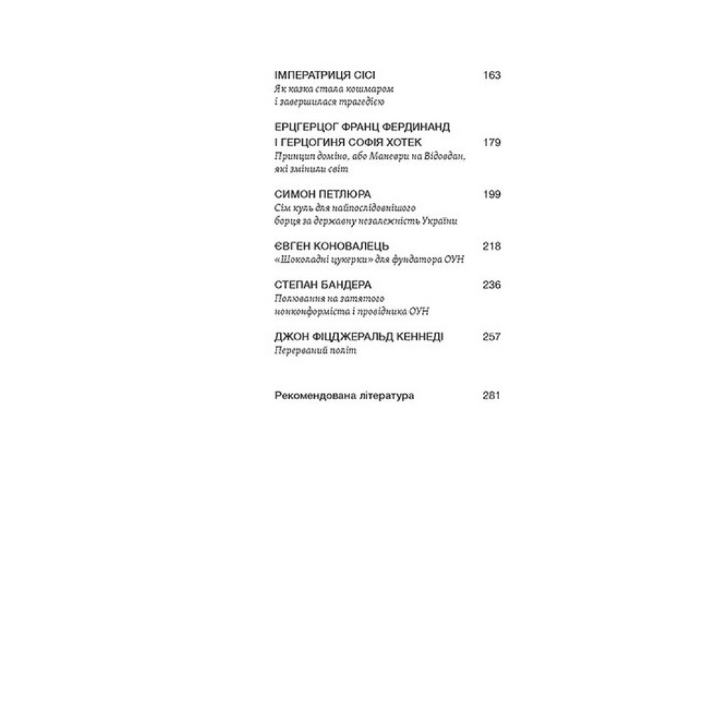 Є постаті, які кардинально змінюють хід історії. Часто їхня доля складається трагічно. Ця книжка — не тільки прискіпливе дослідження останніх миттєвостей життя таких людей. Це і портрет епохи, в якій вони жили, воювали та мирилися, кохали й зраджували, народжували дітей...Знамениті монархи, політичні діячі, полководці й учені. Від короля Генріха IV Бурбона до Джона Кеннеді, від імператриці Єлизавети Австрійської, яку називали найкрасивішою жінкою XIX століття, до борців за незалежність України у XX столітті — Симона Петлюри, Євгена Коновальця та Степана Бандери.Автор книжки намагається розібратися, чим були зумовлені ці злочини: політикою чи економікою, яка котиться у прірву, ідеологічною чи релігійною боротьбою. Або ж це звичайна спроба залишити такий-от кривавий «слід в історії»? Проте, звісно, нічого не відбувається просто так.Сергій Махун — журналіст, популяризатор історії. Працював редактором історичної шпальти «Україна Incognita». Завідував відділом історії та був редактором шпальти «Архіваріус» газети «Дзеркало тижня».