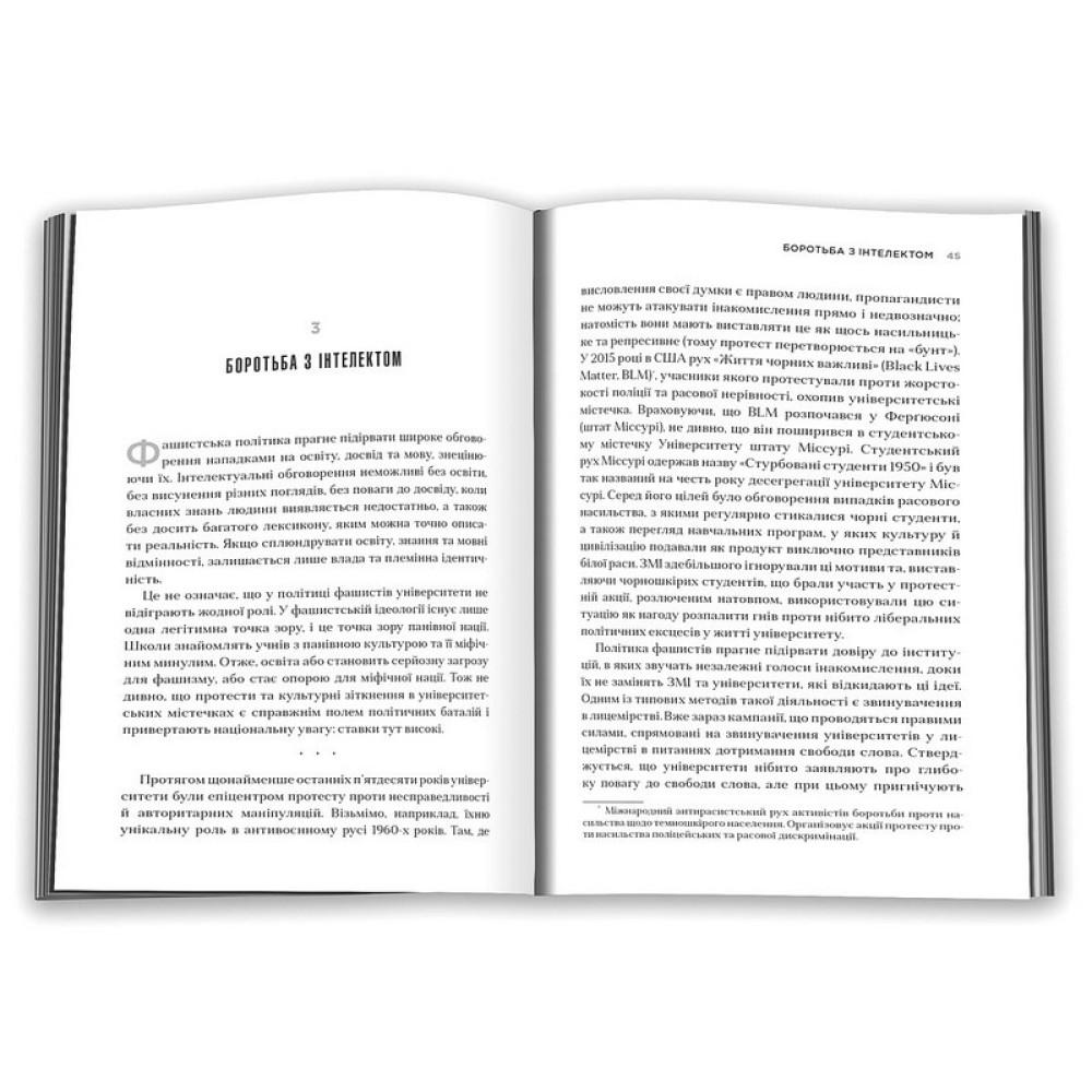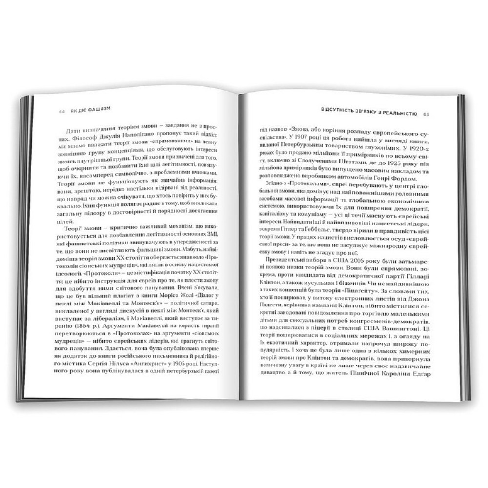 Незважаючи на значний поступ демократії в усьому світі, останніми роками спостерігається підвищення інтересу до застосування методів фашистської політики навіть у найрозвиненіших демократичних країнах. Чим викликані такі тенденції і як їх розпізнати? Чому фашизм піднімає голову на теренах Європи й Америки? Філософ з Єльського університету Джейсон Стенлі визначає ознаки, що дають змогу простежити скочування країн до елементів фашизму: вигадування «славетного» минулого на противагу реальним історичним подіям, боротьба з інтелектуалами, спроби ієрархічної побудови суспільства, використання сучасних ЗМІ як засобів пропаганди на користь однієї суспільної групи чи політичної партії тощо. Дослідник пояснює, як фашистські політики намагаються збурювати в суспільстві паніку, нав’язувати свої стереотипи та применшувати здобутки ліберальної демократії, на якій побудована сучасна західна цивілізація, а також вказує на загрози, які принесе з собою демагогічна риторика і практика неофашистів у США, Угорщині та деяких інших країнах, якщо їх вчасно не виявити та не зупинити.Книга призначена для філософів, соціологів та широкого кола читачів, які цікавляться сучасними тенденціями світової політики.