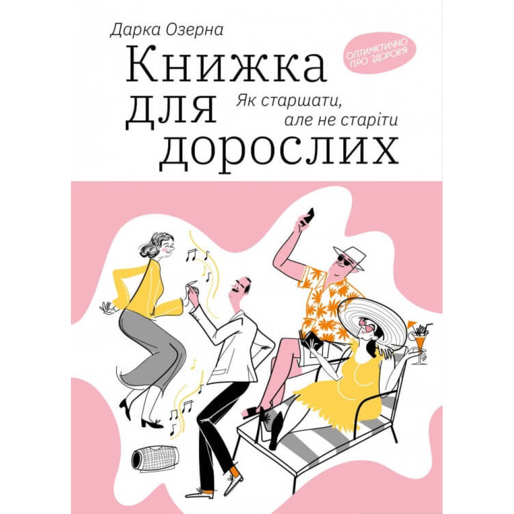 Реалістично про старшання у новій книзі Дарки Озерної ""Книжка для дорослих. Як старшати, але не старіти"", яка стала третьою у серії ""Оптимістично про здоров’я"". Власне, в нашому інформаційному просторі життя всіх людей, старших навіть за 35 років, малопомітне. Чим живуть ""дорослі""? А це правда, що старші люди всі хворі, занудні, несучасні, не хочуть сексу і не подобаються собі в дзеркалі?.. Ні, неправда. Давно на часі переглянути ставлення до віку, старіння, старшання, хронічних хвороб. При чому не просто ""взяти і перестати хворіти"", а збагнути, що з нами відбувається, які є ризики та можливості в кожного віку, та продовжити старшати, та не старіти. ""Книжка для дорослих. Як старшати, але не старіти"" в цьому допоможе. В ній йде мова про чинники, що сповільнюють чи прискорюють старіння, про запобігання серцево-судинним хворобам та раку, життя з діабетом та хворобами легень й кишківника, піклування про тіло від очей до кісток, психічний добробут, загальні та специфічні поради з харчування, про менопаузу, ерекцію, секс, й те, як жити довго і щасливо. Тільки