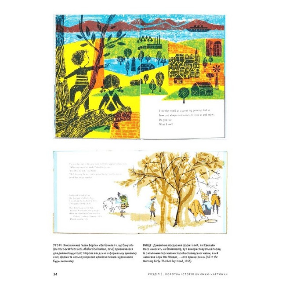 «…Цифрова “книжка-картинка”, яку свого часу вважали загрозою для паперового попередника, майже зійшла зі сцени, виконавши важливу місію — вдихнути нове життя в традиційну книжку. Щоб конкурувати з екранами, які набули такого поширення в нашому житті, друковані книжки мусили стати більш привабливими фізично. Якість виготовлення книжок-картинок стрімко зросла. Багато з них тепер можуть похвалитися рельєфним друком, тисненням і вибірковим ламінуванням, їх друкують на якісному папері з яскравими додатковими «плашковими» кольорами, і це все в поєднанні задовольняє нашу потребу у всебічному тактильному та естетичному сприйнятті книжки. […]Традиційна роль ілюстрації як підпорядкованої писемному слову — та, що її Вікіпедія окреслює як “зображення, що супроводжує текст літературного твору, газетної статті тощо з метою полегшення для читача візуалізації змісту” — стає абсолютно неадекватною, коли йдеться про роль візуального у створенні книжок-картинок. Тут слова й картинки поєднуються в різних співвідношеннях, щоб передати загальне значення, доповнюючи та під’юджуючи одне одного, а часто й суперечачи одне одному. Якщо в ілюстрованій книжці зображення посилюють і доповнюють текст, але не є суттєвими для його розуміння, у книжці-картинці ні слова, ні зображення самі по собі не матимуть сенсу, якщо сприймати їх окремо. […]У 2013 році “Дитячі книжки-картинки” отримали премію в номінації академічної книжки від Асоціації грамотності Сполученого Королівства (UK Literacy Association Academic Book Award), що є свідченням дедалі ширшого визнання ролі візуального змісту книжок-картинок із боку освітньої, літературної та академічної спільнот. У цьому новому виданні розглянуто й пошановано форму мистецтва, яка набуває дедалі ширшого міжнародного визнання та швидко стає однією з найбільш захопливих та інноваційних царин у графічному мистецтві…»Про авторів: Мартін Солсбері — професор ілюстрації в Кембриджській школі мистецтв при Університеті Англія Раскін, автор книжок «Ручка в грі: Нова дитяча книжкова ілюстрація» (Play Pen: New Children’s Book Illustration, 2007) та «100 чудових дитячих книжок-картинок» (100 Great Children’s Picturebooks, 2015).Мораґ Стайлз — почесна професорка Кембриджського університету, авторка праці «Діти, які читають книжки-картинки» (Children Reading Picturebooks, 2017).