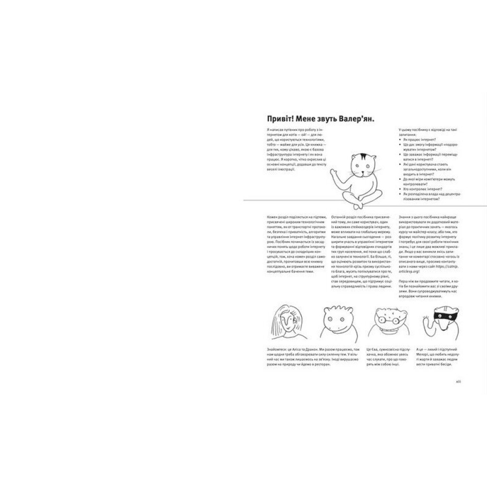 Як працює інтернет? Що дає змогу або заважає інформації «подорожувати» всесвітньою павутиною? Які дані користувача стають загальнодоступними, коли він входить в інтернет? А хто взагалі і до якої міри контролює глобальну мережу? І як розподілена влада над децентралізованим інтернетом? Відповіді на всі ці запитання ви дізнаєтеся із «котячого» путівника про роботу з інтернетом, а дотепні малюнки допоможуть краще уявити, як функціонує глобальний віртуальний світ. Ця книжка буде корисною тим, хто хоче дізнатися, якою є базова інфраструктура інтернету і як вона функціонує, а також користувачам технологіями, тобто майже усім.