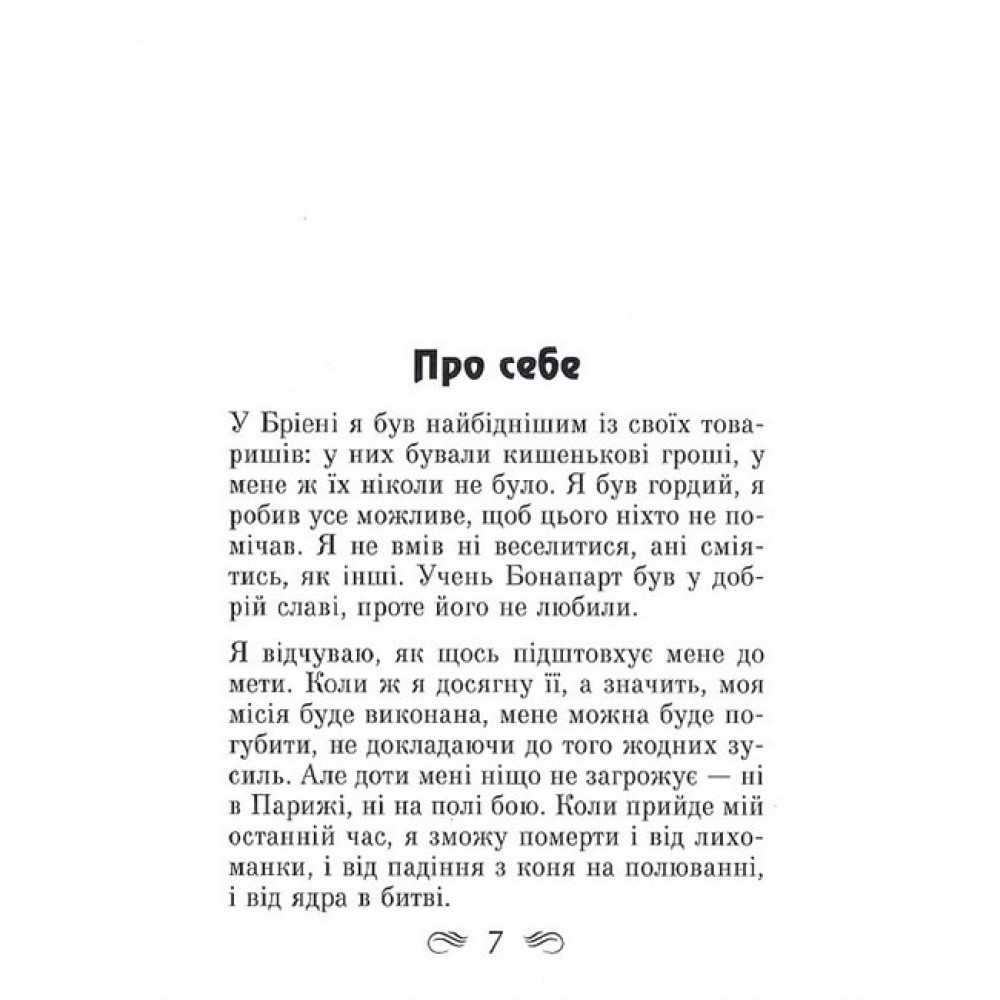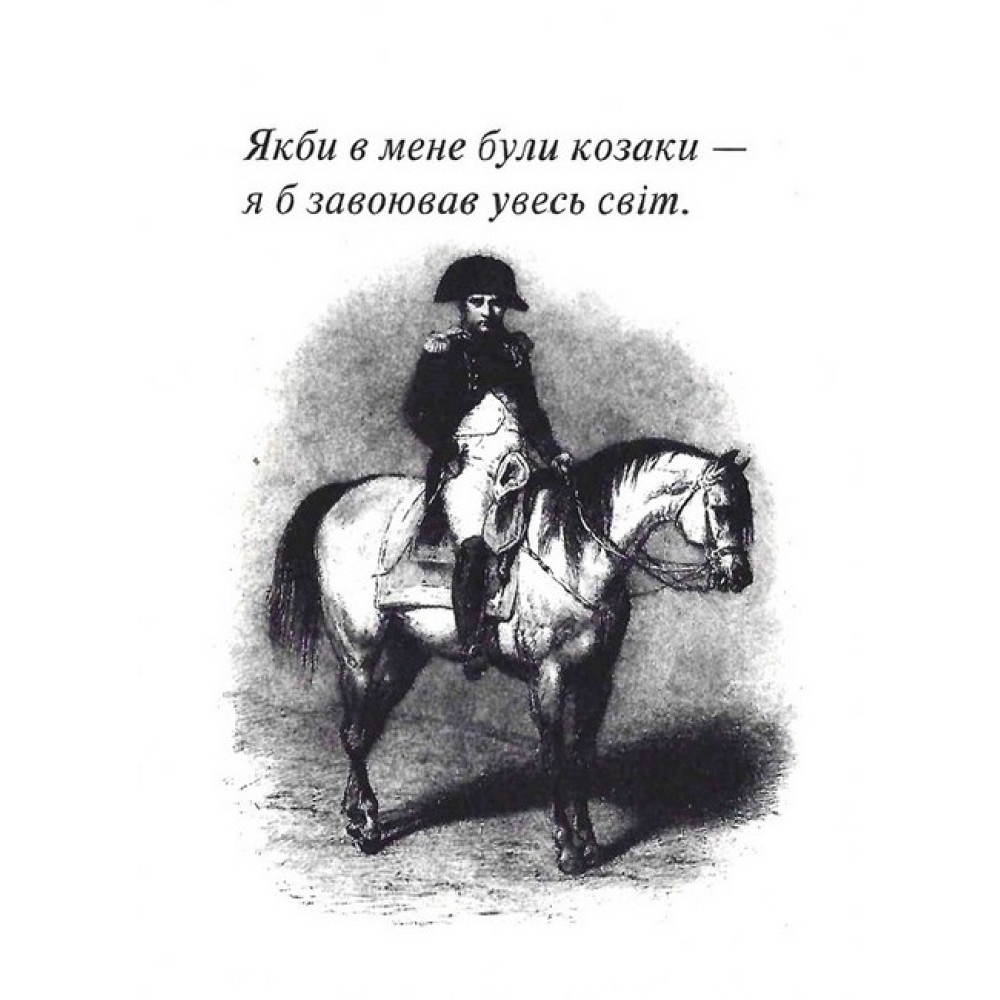 У цьому виданні зібрано афоризми та вагомі вислови Наполеона Бонапарта — французького імператора (1804-1815), великого полководця, який завоював майже всю Європу, мудрого державного і політичного діяча, академіка Французької академії наук, автора численних творів. Наполеон був не лише відомим політиком, а й красномовним оратором, який вирізнявся гострим слівцем. Запроваджені ним закони діють у Франції дотепер, а мудрі вислови знають у всьому світі. Його афоризми цікаві, влучні й дотепні. Вони мають глибокий зміст і торкаються різних питань людського буття: політики, управління державою, війни, свободи, дружби, героїзму та патріотизму.