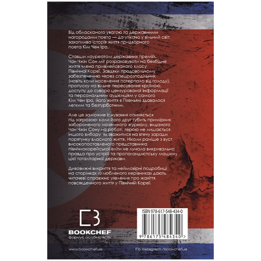 Від обласканого увагою та державними нагородами поета — до утікача у вільний світ: захоплива історія життя придворного поета Кім Чен Іра. Здобувши звання лауреата державних премій, Чан Чжін Сон міг розраховувати на безбідне життя члена привілейованого класу Північної Кореї. Завдяки продовольчому забезпеченню через спецрозподільник (навіть коли населення потерпало від голоду), пропуску на вільне пересування країною, доступу до суворо цензурованої інформації та персональним аудієнціям у самого Кім Чен Іра, його життя в Пхеньяні здавалося легким та безтурботним. Але це заможне існування опиняється під загрозою. Коли друг Чан Чжін Сона губить примірник забороненого іноземного журналу, виданого поетові для службового користування, герою не лишається іншого вибору, як зважитися на втечу заради порятунку власного життя. Ніколи раніше з вуст високопоставленого представника північнокорейської еліти не лунала викривальна правда про устрій та пропагандистську машину цієї тоталітарної держави.