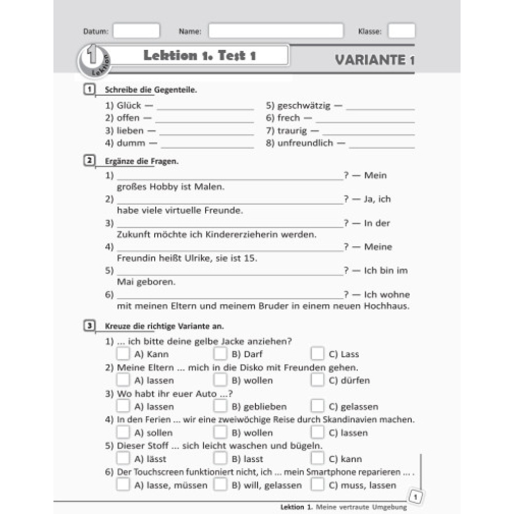 Тестовий зошит, укладений до підручника, містить різнорівневі завдання для оцінювання навчальних досягнень учнів з німецької мови. Крім підсумкових тестів до зошита включено семестрове тестування з усіх видів мовленнєвої діяльності (зорового сприймання, сприймання на слух, усного й писемного продукування, усної й писемної взаємодії).Для учнів 10 класів закладів загальної середньої освіти і вчителів німецької мови.