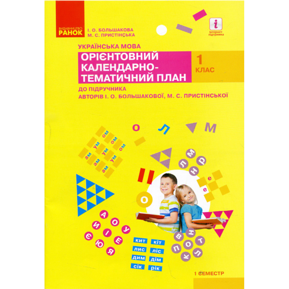 Орієнтовний календарно-тематичний план з української мови для 1 класу (І семестр) для закладів загальної середньої освіти з українською мовою навчання укладено відповідно до Державного стандарту початкової освіти, за Типовою освітньою програмою, розробленою під керівництвом Р. Б. Шияна, та враховує особливості структури підручника Українська мова. Буквар авторів І. О. Большакової, М. С. Пристінської.