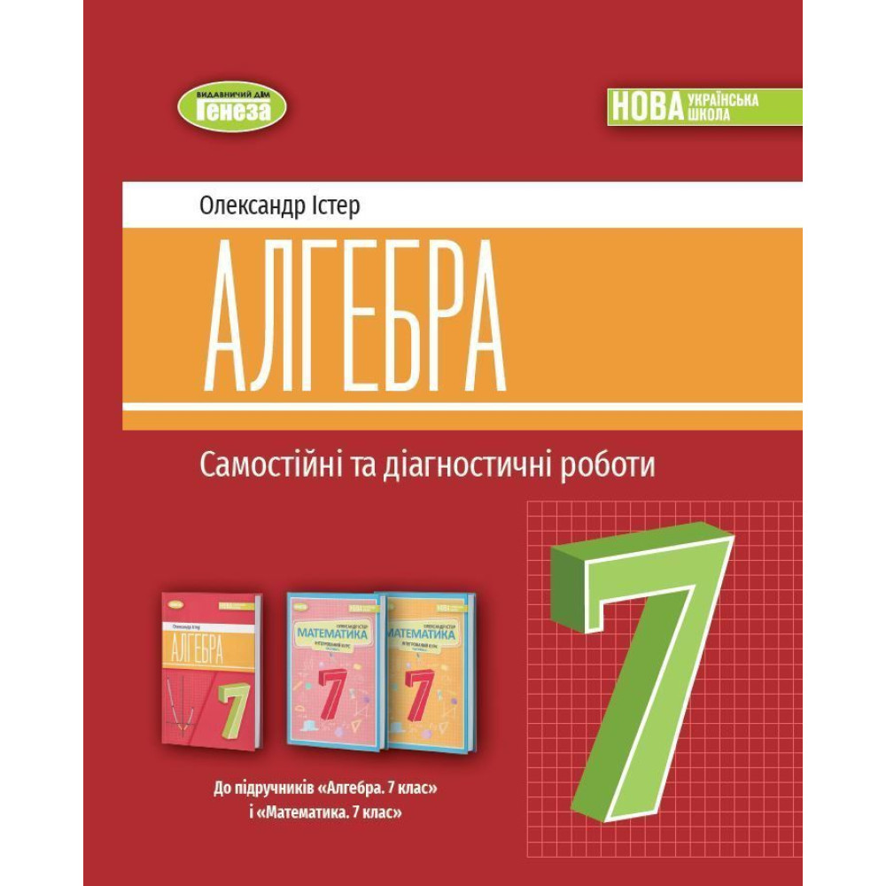 Посібник містить добірку самостійних, тематичних діагностичних (контрольних), семестрових і підсумкової письмових робіт для перевірки й оцінювання результатів навчання, зміст яких відповідає модельним навчальним програмам «Алгебра. 7–9 класи» і «Математика (інтегрований курс). 7–9 класи» (автор – О.С. Істер) та критеріям оцінювання з математики. Семестрові роботи подано у 2-х варіантах, усі інші роботи – у 4-х однотипних варіантах.