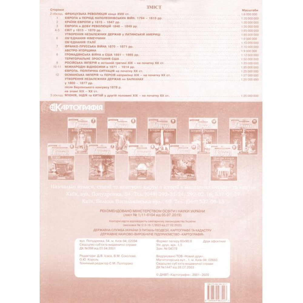 Контурні карти. Всесвітня історія. Новий час (кінець XVIII - XIX ст.) 9 клас