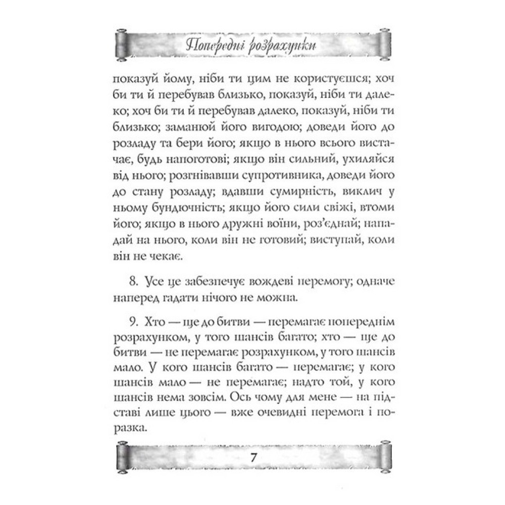 Пропонована книга — це збірка найдавніших із відомих людству трактатів про воєнне мистецтво та його філософію, які написали понад два тисячоліття тому два китайські стратеги й філософи Сунь-цзи та У-цзи. У них стисло викладено базові принципи ведення війни та підготовки до неї. Значення вказаних трактатів не обмежується лише впливом на військове мистецтво Давнього Сходу, вони й досі популярні та входять до навчальних програм військових академій не тільки Китаю, Японії, а й США. Ці твори — основа філософії, мистецтва і науки ведення війни. Пропонована книга — це і джерело воєнної мудрості, і практична інструкція з тактики та стратегії воєнних дій.
