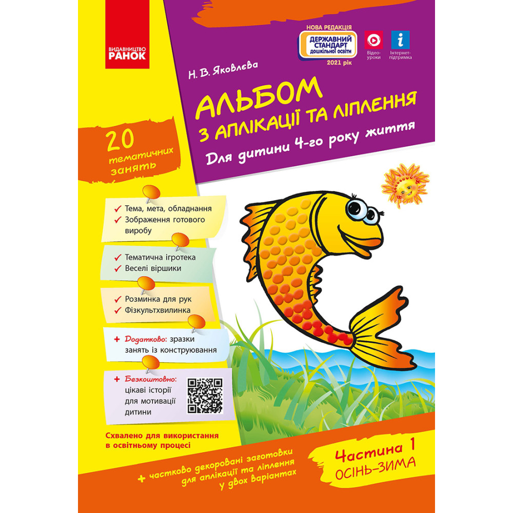 Альбом з аплікації та ліплення 4 р.ж. 1 частина (Укр) + Конструювання / До всіх чинних програм