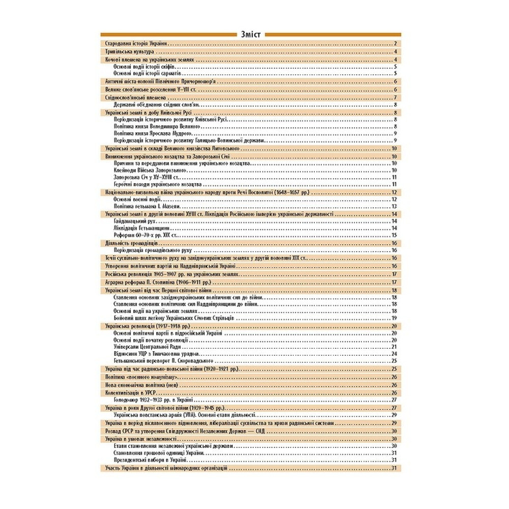 Довідник з історії України допоможе учням 7-11 класів покращити свої знання та підготуватися до самостійних чи контрольних робіт, а також незалежного оцінювання. Інформація подана стисло та чітко у вигляді таблиць, що спрощує пошук потрібної інформації — періодизацій чи переліків історичних подій. Працювати з довідником зручно та швидко!