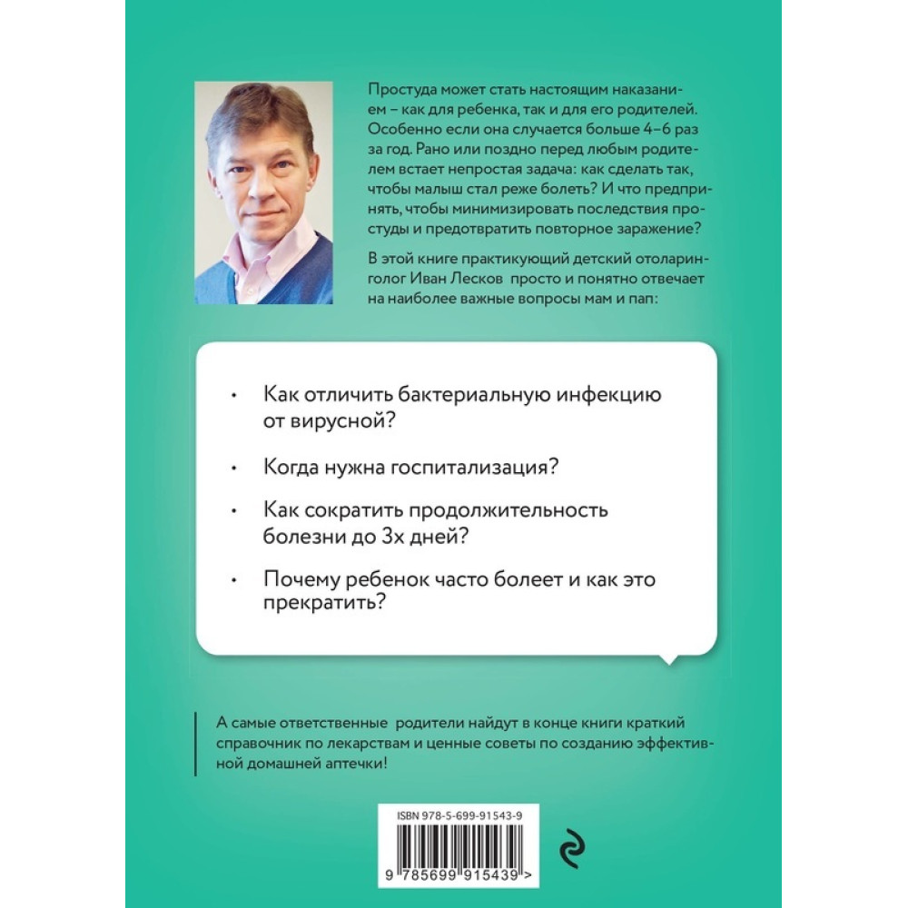 Простуда – коварное заболевание, самые эффективные средства в борьбе с которым – это определение вида инфекции и быстрота начала лечения. Зачастую понять, что делать, необходимо незамедлительно, и в этом вам поможет эта книга. В ней практикующий детский отоларинголог Иван Лесков просто и понятно отвечает на самые важные вопросы мам и пап: