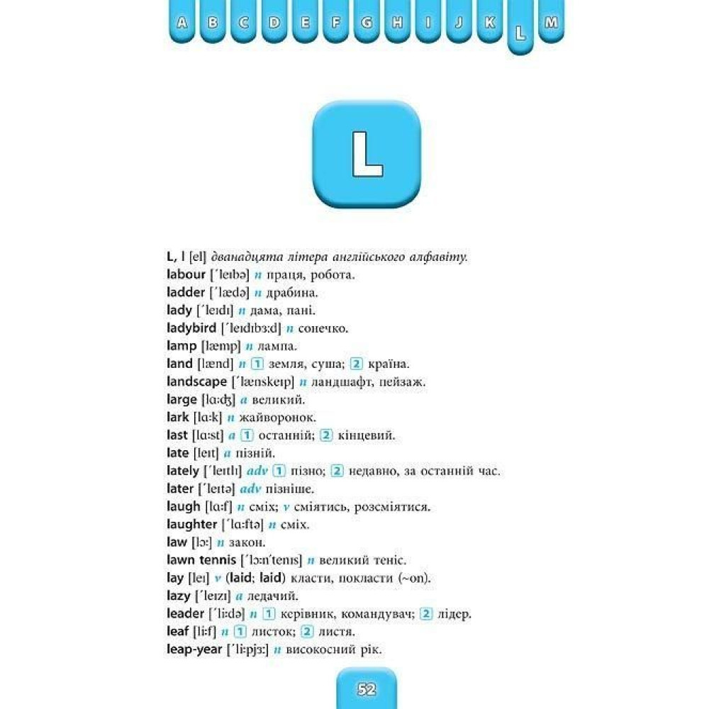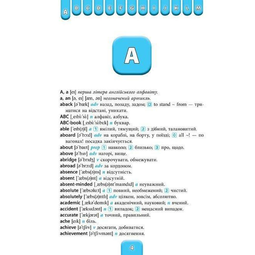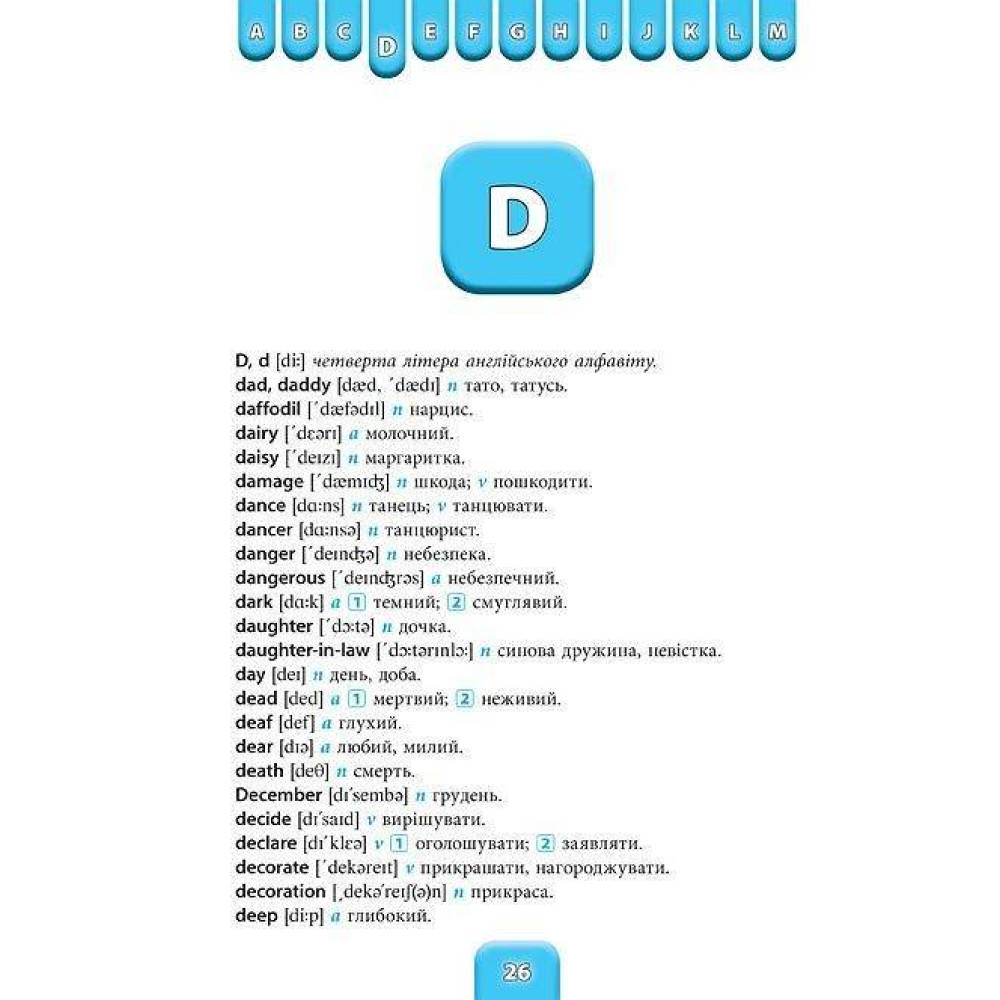 Англо-український словник призначений для учнів 1-4 класів, а також для всіх, хто тільки починає вивчати англійську мову. Видання містить більш ніж 3000 базових слів, які повинен знати учень молодшого шкільного віку.