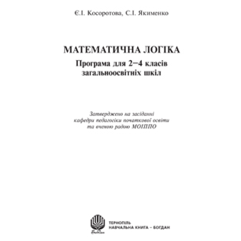 Пропонована авторська програма з математичної логіки передбачає ознайомлення учнів 2–4 класів зі змістом основних логічних понять, законів логіки, логічних дій та операцій, а також із логічними прийомами отримання знань не лише з математики, але й з інших шкільних дисцип-лін. Для вчителів початкових класів, студентів педагогічних навчальних закладів.