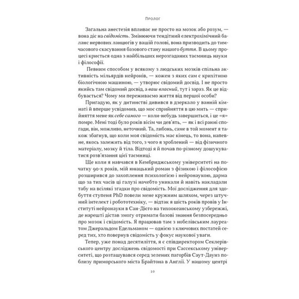 Що може бути більш захопливим за прагнення пізнати свою сутність та осягнути світ довкола? У книжці «Бути собою» один з найвидатніших сучасних нейронауковців Еніл Сет пропонує зазирнути у вікно нашої свідомості і побачити своє справжнє «я». Його радикальний аргумент полягає в тому, що ми не відкриваємо світ, а постійно конструюємо та моделюємо його у мозку.Автор доступно показує, як тіло людини впливає на її свідомість, як формується наш свідомий досвід тут і зараз, як тісно пов'язані самосприйняття та психологічний контроль, чи є свобода волі ілюзією, що означає насправді — «бути собою». Він також приділяє велику увагу питанню, чи може штучний інтелект стати свідомим, і якщо так, чим це загрожує людству?Ця яскрава, провокативна і водночас революційна книжка дозволяє зазирнути за лаштунки нейронаукових досліджень і технологічних досягнень, докорінно змінює наші уявлення про власний розум і допомагає зрозуміти сценарії життя у світі майбутнього.