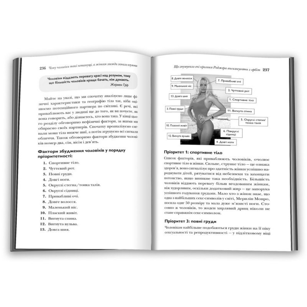Світовий бестселер! Книги Алана Піза продаються по всьому світу мільйонними тиражами! ПОВНИЙ ПОСІБНИК ІЗ РОЗУМІННЯ ПРОТИЛЕЖНОЇ СТАТІ! Чи знаєте ви про сім речей які із задоволенням роблять чоловіки та які доводять до сказу представниць прекрасної статі? А про справжню причину, з якої жінки плачуть частіше за чоловіків? Що чоловіки найчастіше шукають у жінках - як на першій зустрічі, так і в довгостроковій перспективі? Для Барбари та Аллана Пізів це лише відпрані точни, з яких вони починають обговорення реальних - часом неочікувано кумендних - відмінностей між чоловіками та жінками. Загалом у цій книзі розглядаються питання, що століттями збивали чоловіків і жінок з пантелику. Спираючись на результати новітніх досліджень мозку та соціальних змін, дані з еволюційної біології та психології, подружжя Пізів навчить вас, як зробити свої стосунки максимально плідними або принаймні почати розуміти, з якої планети походить ваш партнер. Так, жінкам автори допоможуть усвідомити, чому чоловіки уникають зобов'язань, що змушує їх брехати, як розтлумачити слова чоловіка, або збагнути, що насправді він має на увазі. А чоловікам вони пояснять, чому жінки прискіпуються, як вони вдаються до емоційного шантажу і, зрештою, як зрозуміти (й застосувати собі на користь!) надзвичайно секретку систему нарахування балів, що її використовують усі жінки. У притаманному їм гумористичному стилі Барбака та Аллан шукають відповіді на запитання, через які між чоловіками та жінками постійно точаться баталії - від права та перемикання телевізійних каналів і правил застосування туалетної сидушки до шопінгу та манери спілкування, пояснюють, чим можна відразу привабити і чим відштовхнути представників протилежної статі. Аллан і Барбара Пізи - найуспішніші автори у книжковому бізнесі, що висвітлюють гендерні стосунки. Написані ними п'ятнадцять книг посіли перші місця у різноманітних рейтингам, а дев'ять із них взагалі стали бестселерами. Видання цих авторів, перекладені п'ятдесят однією мовою, продаються у більш ніж сотні країн - уже реалізовано понад 25 мільйонів примірників. Постійно подорожуючи світом, Аллан і Барбара проводять різноманітні семінари, регулярно дають розлогі інтерв'ю представникам світових ЗМІ.