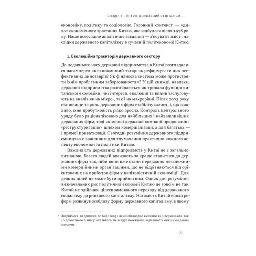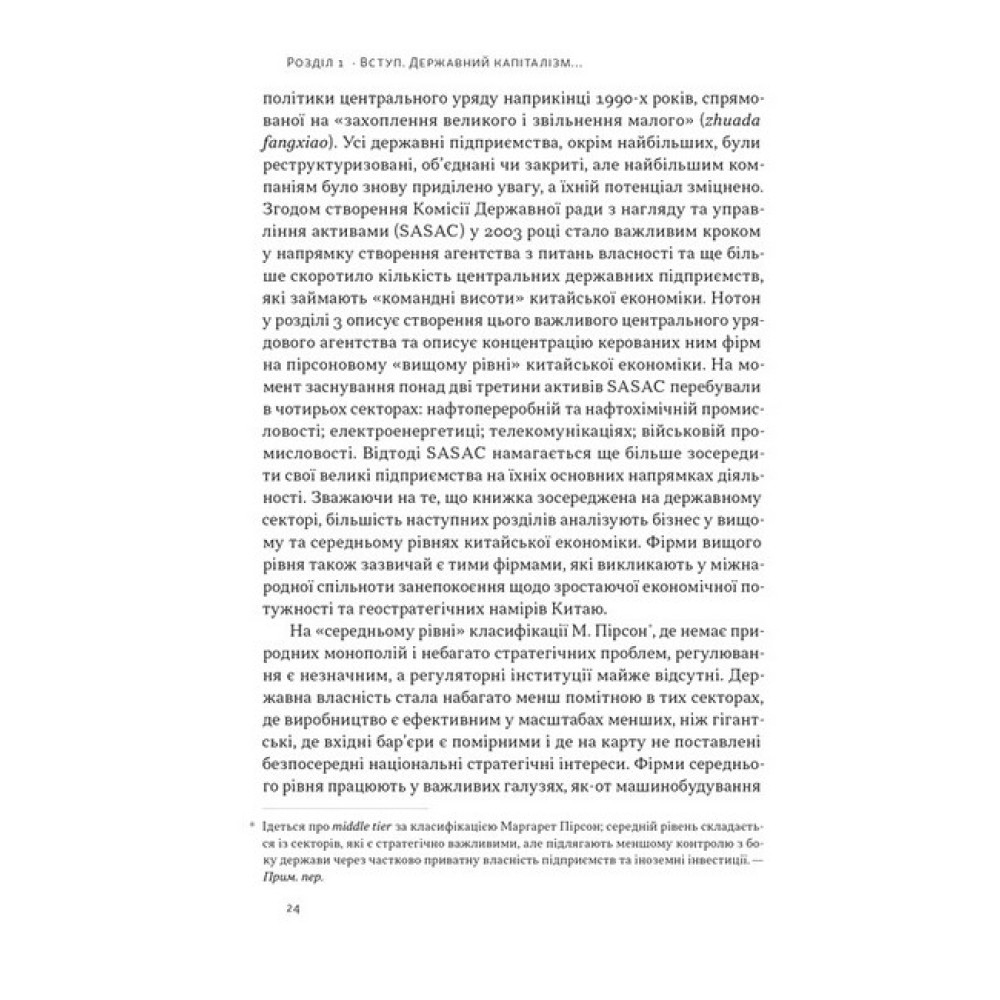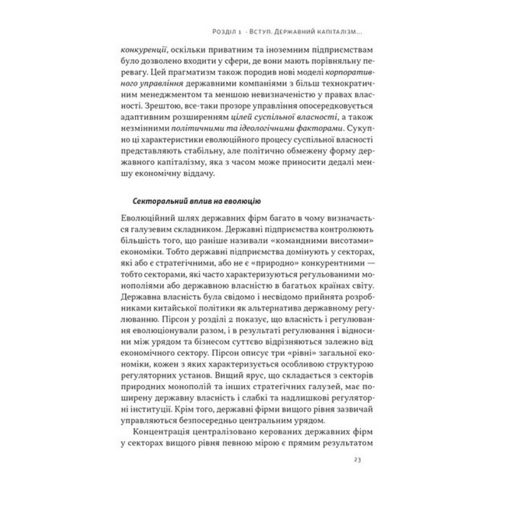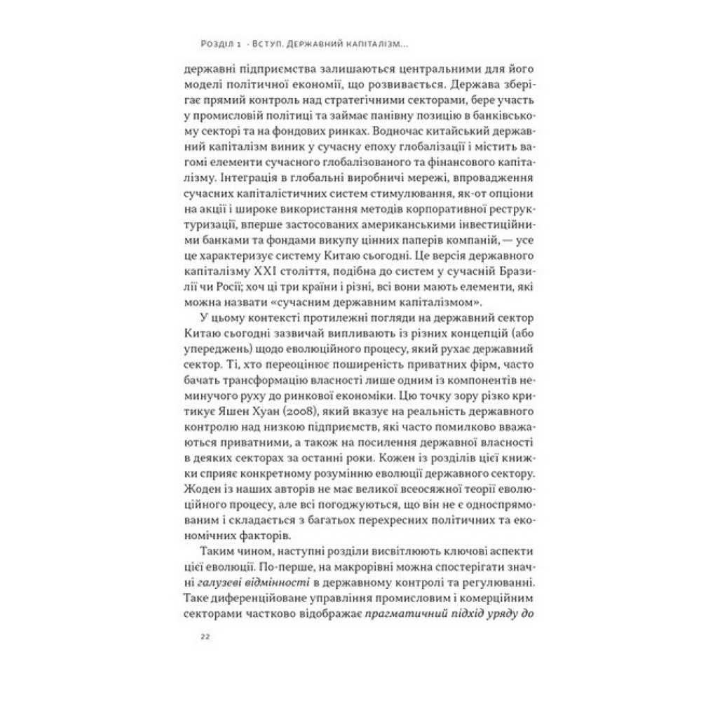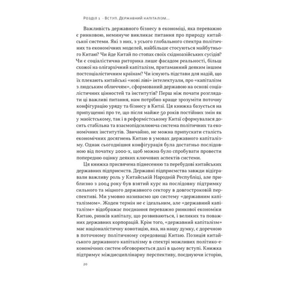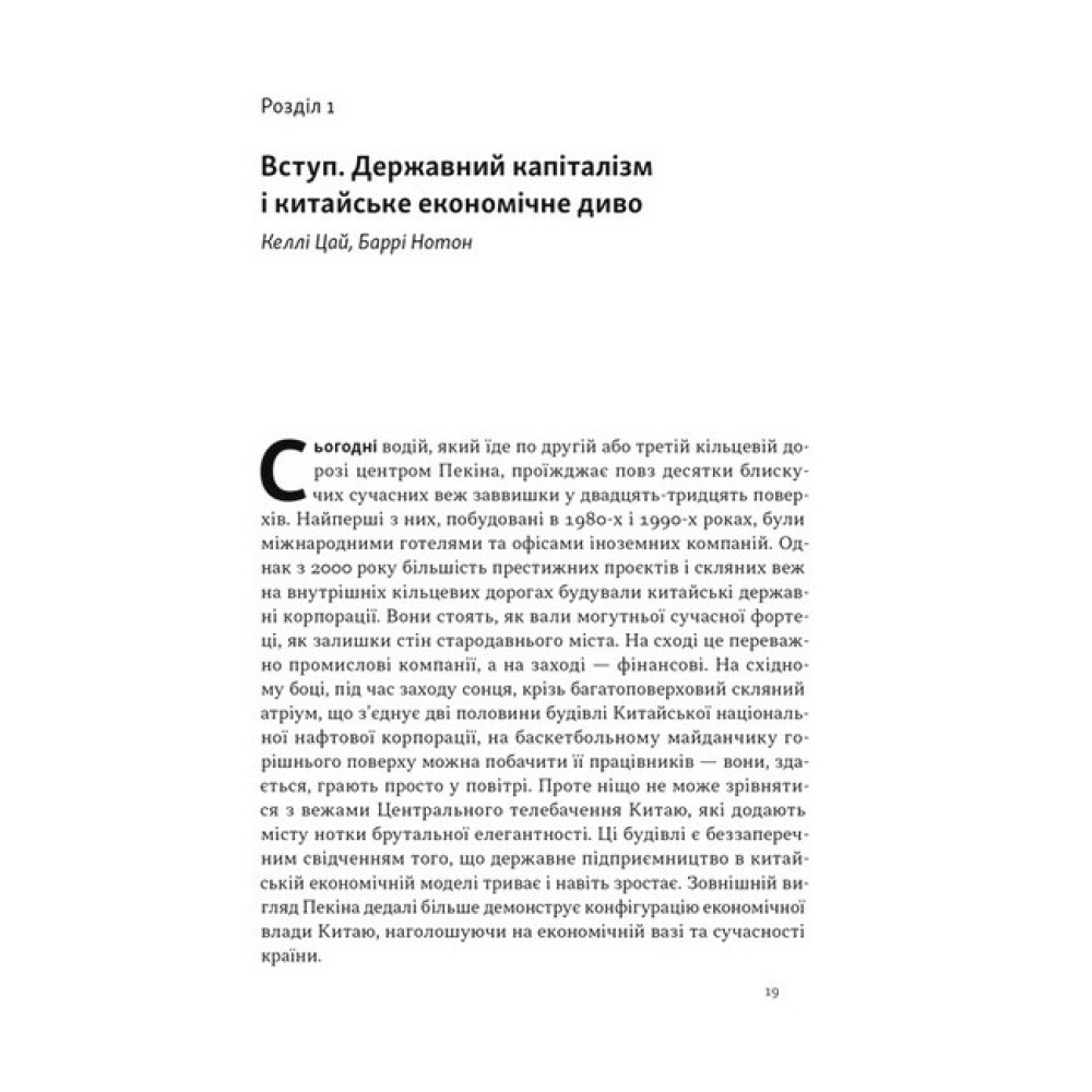 Перехід Китаю до нової форми капіталізму, що відбувся у XXI столітті, незмінно привертає увагу світу. І це не дивно. З кінця 1970-х завдяки феноменальним темпам економічного зростання Китай посів провідне місце у світовому виробництві, фінансах і політиці. Яку ж роль відіграла у вказаних змінах держава? У цій книжці група провідних західних фахівців-китаєзнавців аналізує структуру китайської економіки, фактори її зовнішньої та внутрішньої конкурентоздатності, здобутки та невдачі адаптації Китаєм західних моделей незалежних державних регуляторів, розбіжності між центром та провінціями, а також особливості корпоративного управління компаній, що вийшли на фондові біржі. ПРО АВТОРІВ Баррі Нотон — професор економіки Китаю у Вищій школі міжнародних відносин і тихоокеанських досліджень імені Лок Кван Со Каліфорнійського університету в Сан-Дієго. Член Ради міжнародних відносин і позаштатний науковий працівник Інституту Брукінгса у Вашингтоні, округ Колумбія. Келлі Цай — керівниця відділу та професорка соціальних наук Гонконзького університету науки та технологій, професорка політології Університету Джонса Гопкінса. Працювала в Morgan Stanley і Women’s World Banking, консультувала Світовий банк.