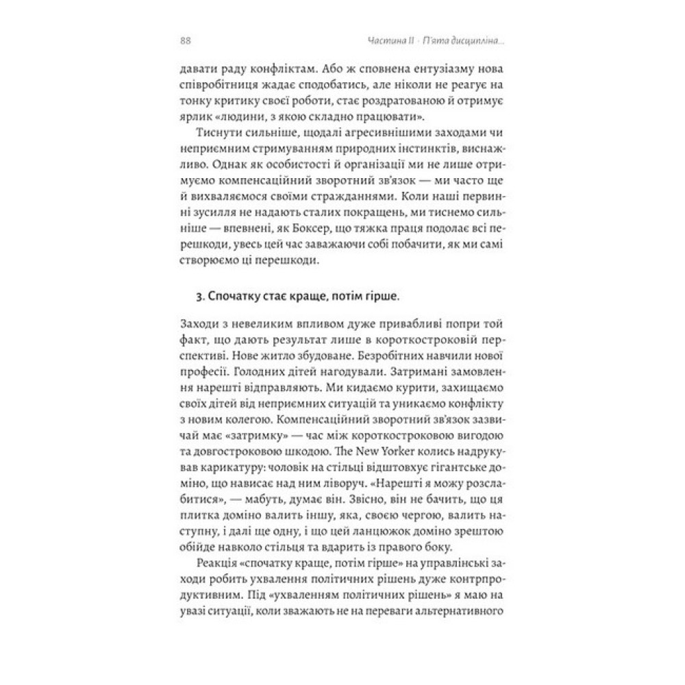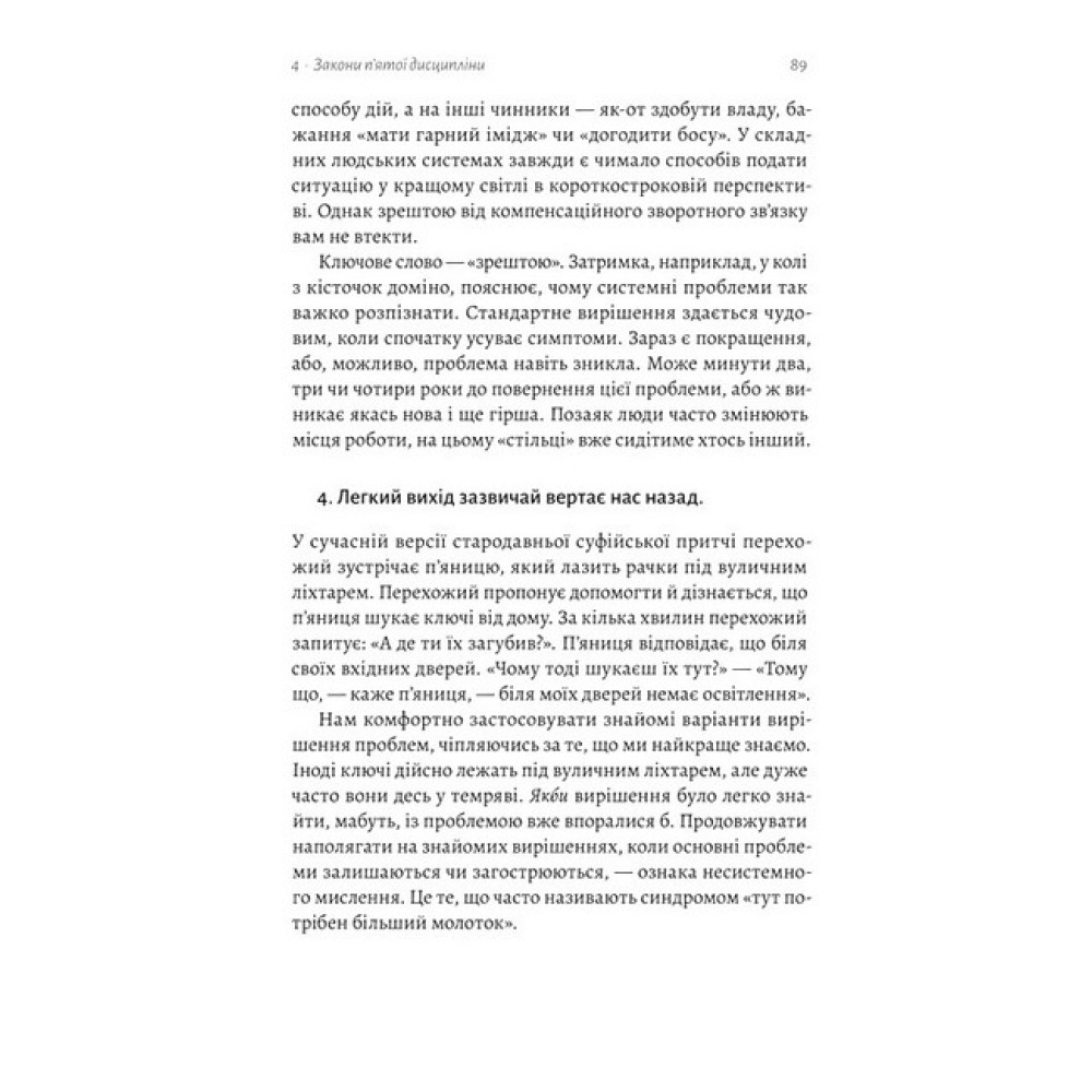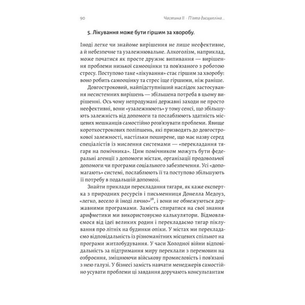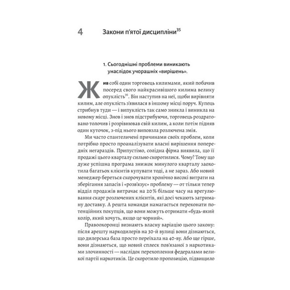 Доповнене видання класичного бестселера, що ґрунтується на п'ятнадцятирічному досвіді реалізації концепцій Пітера СенджіПанівна система управління приречена: часи, коли нездатність скористатися колективним розумом, властивим ефективній спільній роботі, компенсують тяжкою працею, позаду. Це не екологічно і точно не ефективно. А єдиною стійкою перевагою організацій у сучасному світі є здатність навчатися швидше за конкурентів. Пітер Сенджі доводить, що лідери компаній і організацій, позбуваючись перешкод і стереотипів стосовно навчання і приймаючи нові стратегії, які вивільняють істинні колективні прагнення, допомагають своїм же працівникам досягати високих результатів. Опанування уроків, описаних у «П’ятій дисципліні», допоможе навчитися бачити навколишній світ по-новому, запалити іскру творчості й звільнитися від обмежень та стереотипів усім, хто цього по-справжньому прагне: і компаніям, які працюють за принципами сталого розвитку, і організаціям, що вирішують соціальні проблеми — вуличного бандитизму, зміни систем шкільної освіти, сприяння економічному розвитку чи боротьби з бідністю. А керівники здобудуть знання про п’ять базових складників успіху: постійне самовдосконалення кожного працівника, інтелектуальну модель, загальне бачення, навчання команд і — найголовнішу, п'яту дисципліну, що дасть змогу поєднувати мозаїку миттєвих подій у чітку картину — мислення системами.Чому варто прочитати?Одна з найважливіших книг з менеджменту за останні сімдесят п'ять років.Оновлене видання, що містить понад сто сторінок нового матеріалу, створеного на основі інтерв'ю з десятками практиків з компаній, як BP, Unilever, Intel, Ford, HP, Saudi Aramco та організацій, як Roca, Oxfam та Світовий банк.Наповнена історіями лідерства, що демонструють безліч способів, якими основні ідеї «П’ятої дисципліни» (багато з яких здавалися радикальними під час першої публікації) стали глибоко інтегрованими у світогляд людей та їхні управлінські практики.Допоможе розпалити вогонь до справжнього навчання, яким керують люди, зосереджені на тому, що для них справді має значення, перевести командну роботу у площину макротворчості, звільнитися від обмежувальних припущень та мислення і покладе край боротьбі між робочим та особистим часом.Дякуємо Борису Шестопалову, ідеологові Volia Food Valley та співзасновникові компаній HD-group I GFSGroup, за люб'язну підтримку цього видання.Про автора:Пітер Сенджі (Peter M. Senge) — старший викладач Массачусетського технологічного інституту, голова-засновник Товариства організаційного навчання (Society for Organizational Learning, SoL) — глобальної спільноти корпорацій, дослідників та консультантів, яка займається «взаємозалежним розвитком людей та їхніх інституцій». Є співавтором книг The Fifth Discipline Fieldbook, The Dance of Change та Schools That Learn (частина серії Fifth Discipline Fieldbook), а також виступає з лекціями по всьому світу.