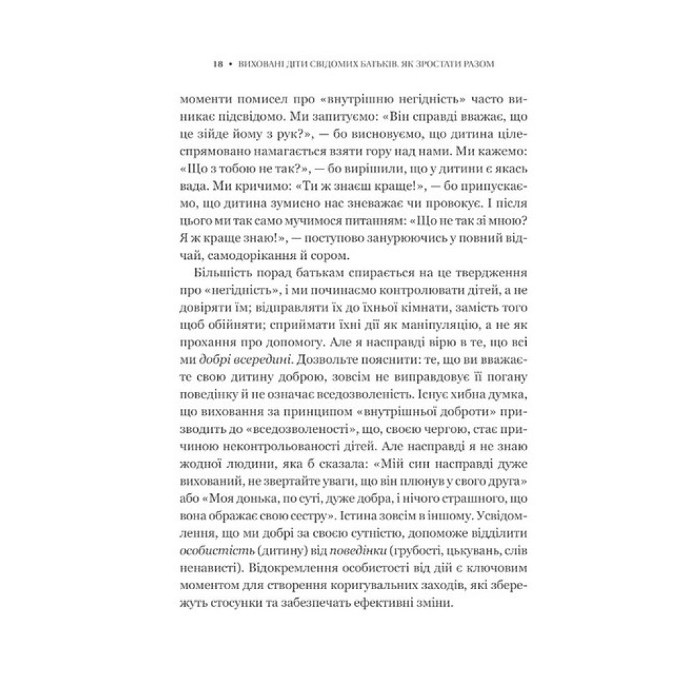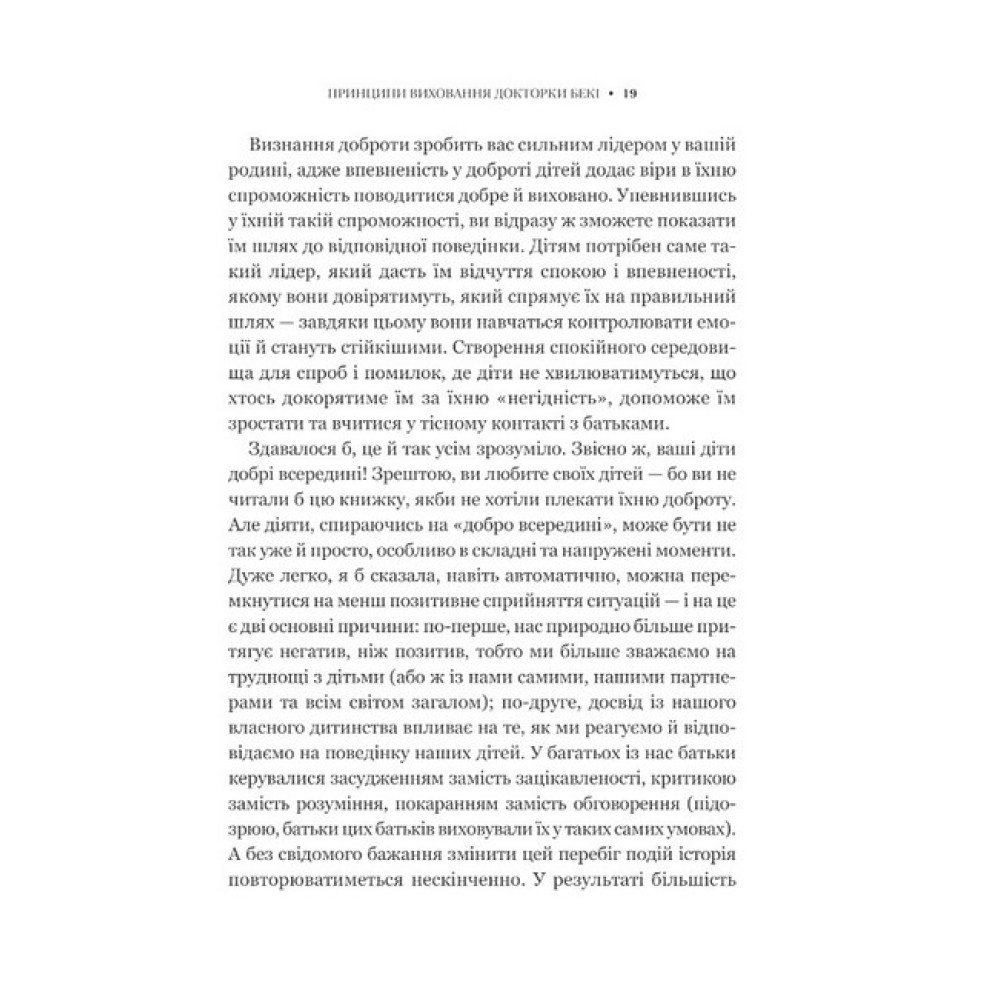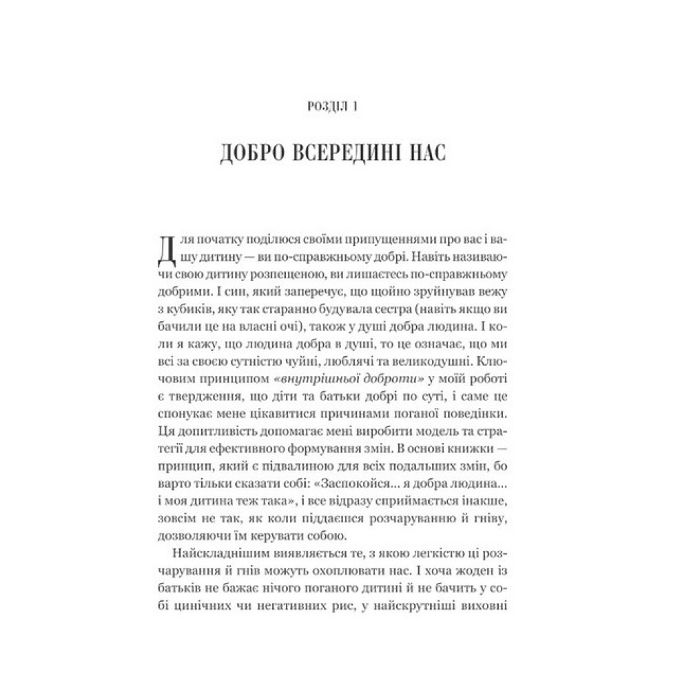 Виховання — складний і багатогранний процес: батьки намагаються порозумітися зі своїми дітьми, допомагають їм сформувати кордони, обстоюючи власні, вчаться бути справедливими та чесними, випромінюючи любов і турботу. Найчастіше вони обирають одну з двох тактик: або правила потрібні й мають обмежувати, або правила не потрібні, бо вони обмежують. Бекі Кеннеді створила новаторську філософію виховання, яка дозволяє поєднувати обидва варіанти. Ви можете бути хорошими, веселими батьками, які здатні сказати тверде «ні», не відчуваючи провини. Ви здатні підготувати малечу до щасливого дорослого життя без страждань, ультиматумів, покарань і сліз, враховуючи ї ї складні емоційні потреби.Тож цей практичний посібник не для тих, кому потрібні зручні сини чи доньки. Він для тих, хто шукає дієвих стратегій мирного сімейного спілкування та покращення зв’язку між батьками й дітьми. Дітьми, які інколи вередують, влаштовують істерики, брешуть, бояться говорити про свої почуття і… плекають добро всередині.
