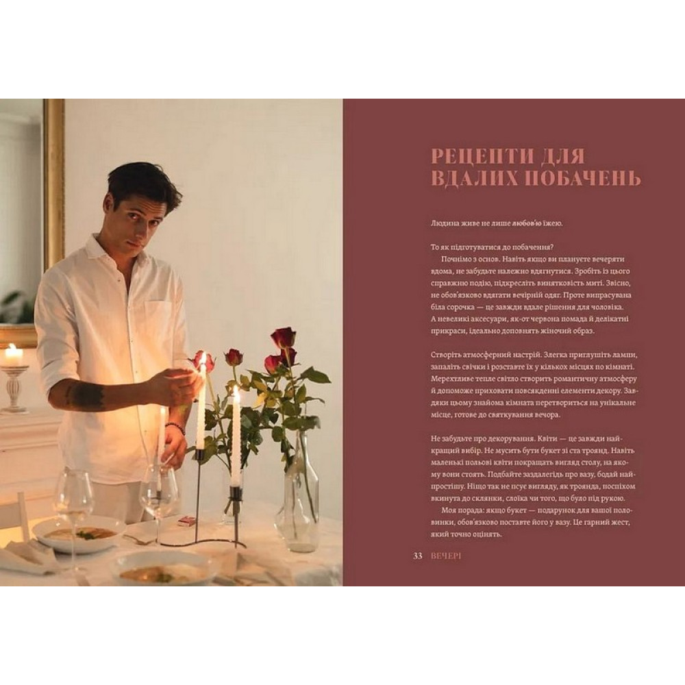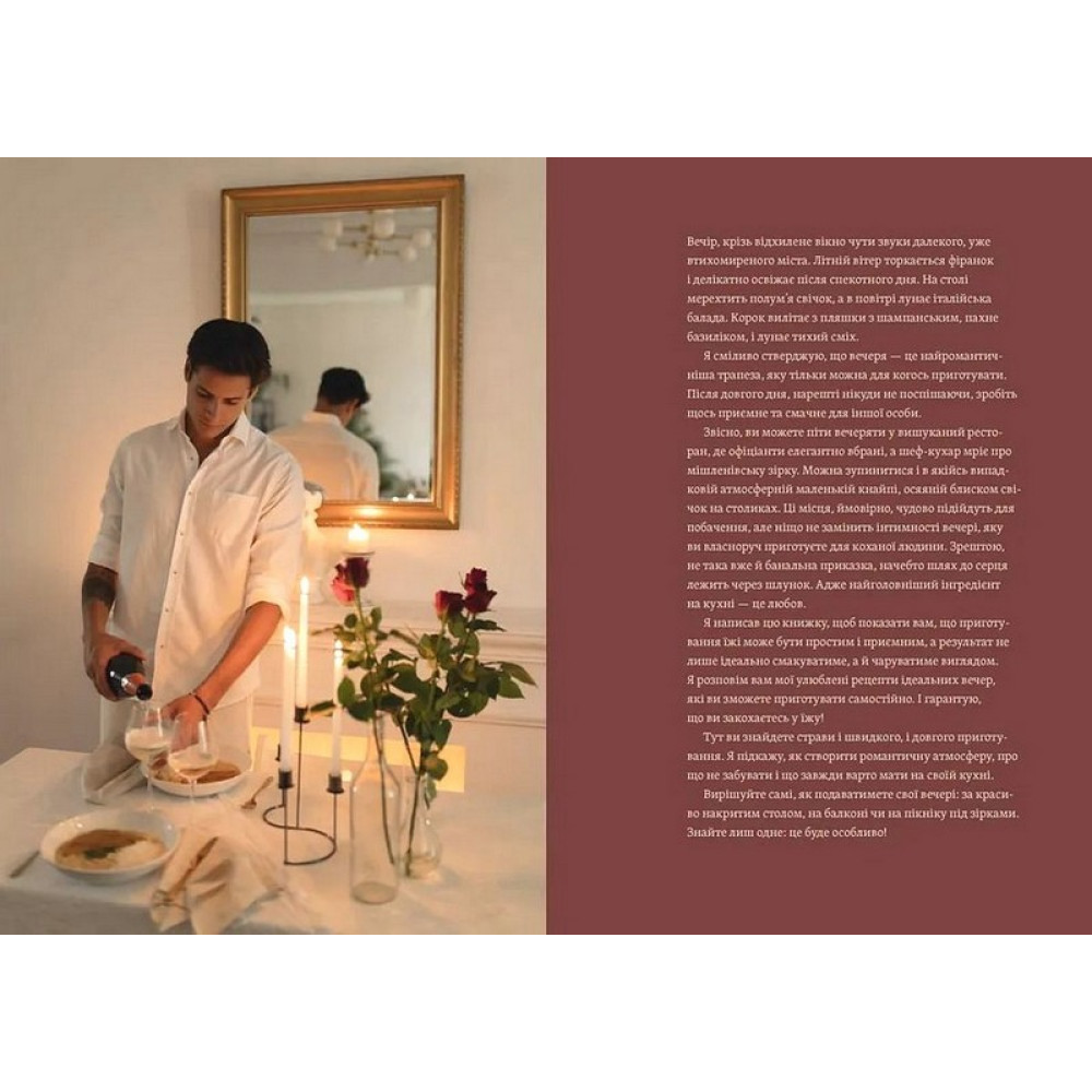Ця книжка — підбірка рецептів вечер та сніданків для ідеальних побачень. У ній ви знайдете рецепти страв як швидкого, так і неквапливого приготування. На вас чекають неочевидні поєднання смаків, зокрема італійської та української кухонь, приправлені до смаку близькосхідними ароматами. Приготування та куштування їжі може подарувати вам винятковий досвід. Вершкові соуси, свіжі овочі, хрусткі грінки, политі медом, пармезан та фісташки — усе це суміш смаків: солоного, солодкого, кислого та умамі. Автор і кулінарний майстер Володимир Тестарді навчає готувати, експериментуючи та з любов’ю, розповідає, як створити романтичну атмосферу на кухні, а ще радить, що завжди варто мати під рукою для найсмачніших результатів.