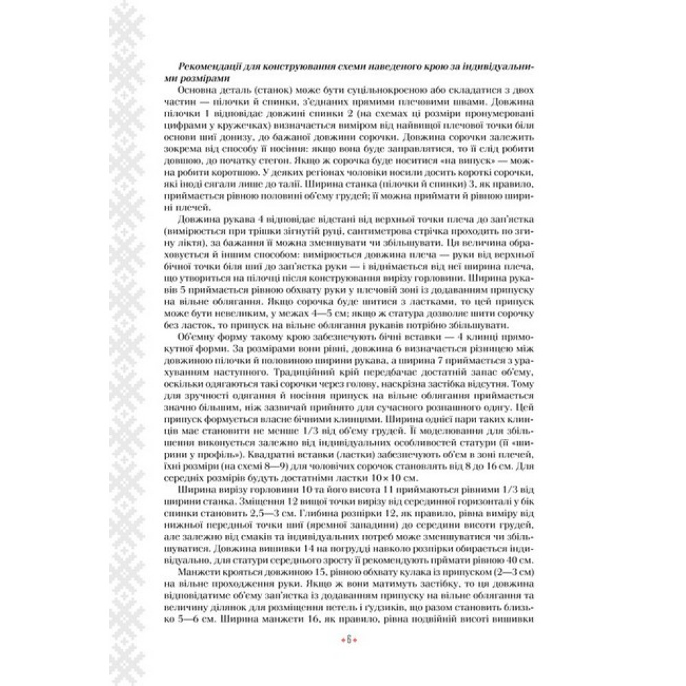 Альбом-посібник, що стане справжнім подарунком для всіх майстринь!Українська вишивка — перлина народної культури, візитівка українців та справжній культурний код, що зберігає в собі традиції наших предків. Чудові орнаменти, старовинні та сучасні крої сорочок, гармонійне поєднання кольорів… Вишиванки — це окраса українського традиційного одягу.Альбом-посібник стане справжнім подарунком для усіх, хто закоханий в українську вишивку! Композиції вишивки для чоловічих та жіночих сорочок створені на основі як старовинних колекційних взірців, так і сучасних тенденцій вишивання. У книзі є все, що необхідно для того, аби самостійно пошити та власними руками вишити красиву українську одежу:детальні схеми узорів для різних деталей сорочоквказівки щодо вишивання хрестиком, напівхрестиком, швів «назад голка», «стебловий»схеми кроювізерунки та орнаменти з різних регіонів УкраїниВідкрийте для себе скарбницю українського вишивального мистецтва!Альбом-посібник, що стане справжнім подарунком для всіх майстринь! Українська вишивка — перлина народної культури, візитівка українців та справжній культурний код, що зберігає в собі традиції наших предків. Чудові орнаменти, старовинні та сучасні крої сорочок, гармонійне поєднання кольорів… Вишиванки — це окраса українського традиційного одягу. Альбом-посібник стане справжнім подарунком для усіх, хто закоханий в українську вишивку! Композиції вишивки для чоловічих та жіночих сорочок створені на основі як старовинних колекційних взірців, так і сучасних тенденцій вишивання. У книзі є все, що необхідно для того, аби самостійно пошити та власними руками вишити красиву українську одежу:детальні схеми узорів для різних деталей сорочок, вказівки щодо вишивання хрестиком, напівхрестиком, швів «назад голка», «стебловий», схеми крою, візерунки та орнаменти з різних регіонів України.Відкрийте для себе скарбницю українського вишивального мистецтва!