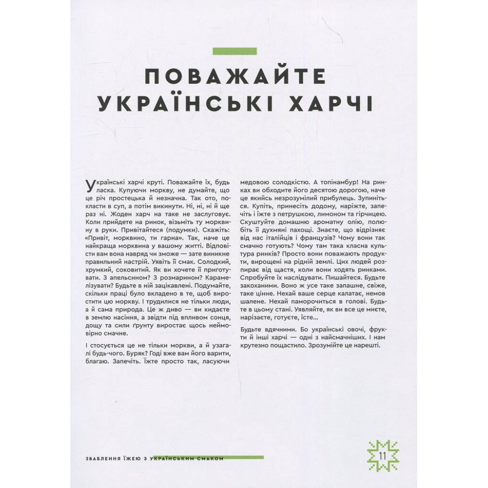Зваблення їжею з українським смаком" - це вже друга книжка відомого шеф-кухаря, кулінарного експерта та телеведучого Євгена Клопотенка. Автор протягом кількох років досліджував історію національних страв, вивчав кулінарну літературу різних часів, мандрував всією країною, спілкувався з істориками, щоб сформувати власне розуміння української кухні і викласти його у новій книжці. У ній — 70 авторських рецептів давніх страв, які розділено на 9 розділів. Ви дізнаєтесь як приготувати супи та юшки, страви з м’яса, риби, овочів та грибів, каші, напої, закуски, випічку та солодке. Окрім рецептів, книжка містить чимало цікавих фактів про українські продукти та харчі — як їх споживали раніше, чим вони корисні, у який спосіб їх найкраще готувати. А ще кулінарний експерт згадує про свою дослідницьку експедицію та міста, які вразили його своєю кулінарною традицією. «Українська кухня багатогранніша, ніж нам здається. Ми знаємо лише 15 відсотків того, що є насправді. І це трохи смішно, бо за стільки років люди не доклали жодних зусиль, щоб її вивчити. Сприймали її досить поверхово. А вона глибша, серйозніша та менш стереотипна, ніж ми думаємо. Українська кухня може дивувати. Приготуйте п’ять страв із цієї книжки — і відчуєте, як серце наповнюється радісним хвилюванням». — Євген Клопотенко