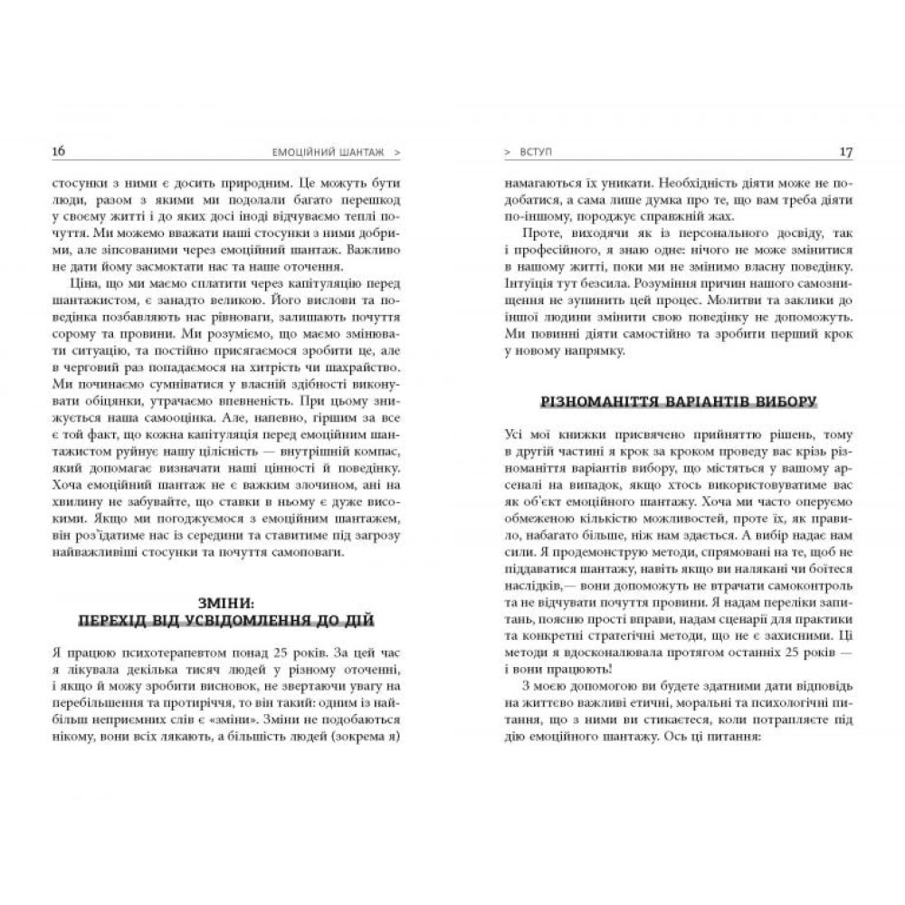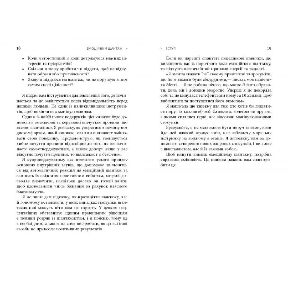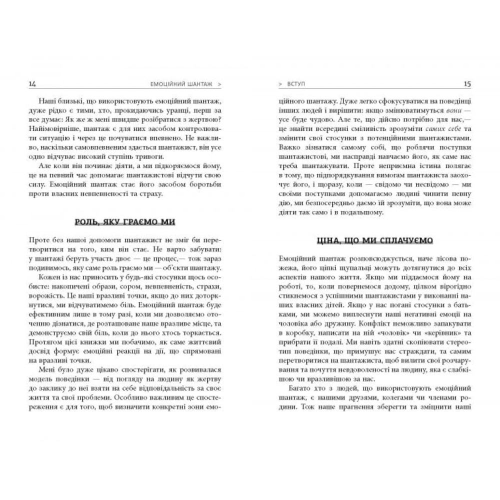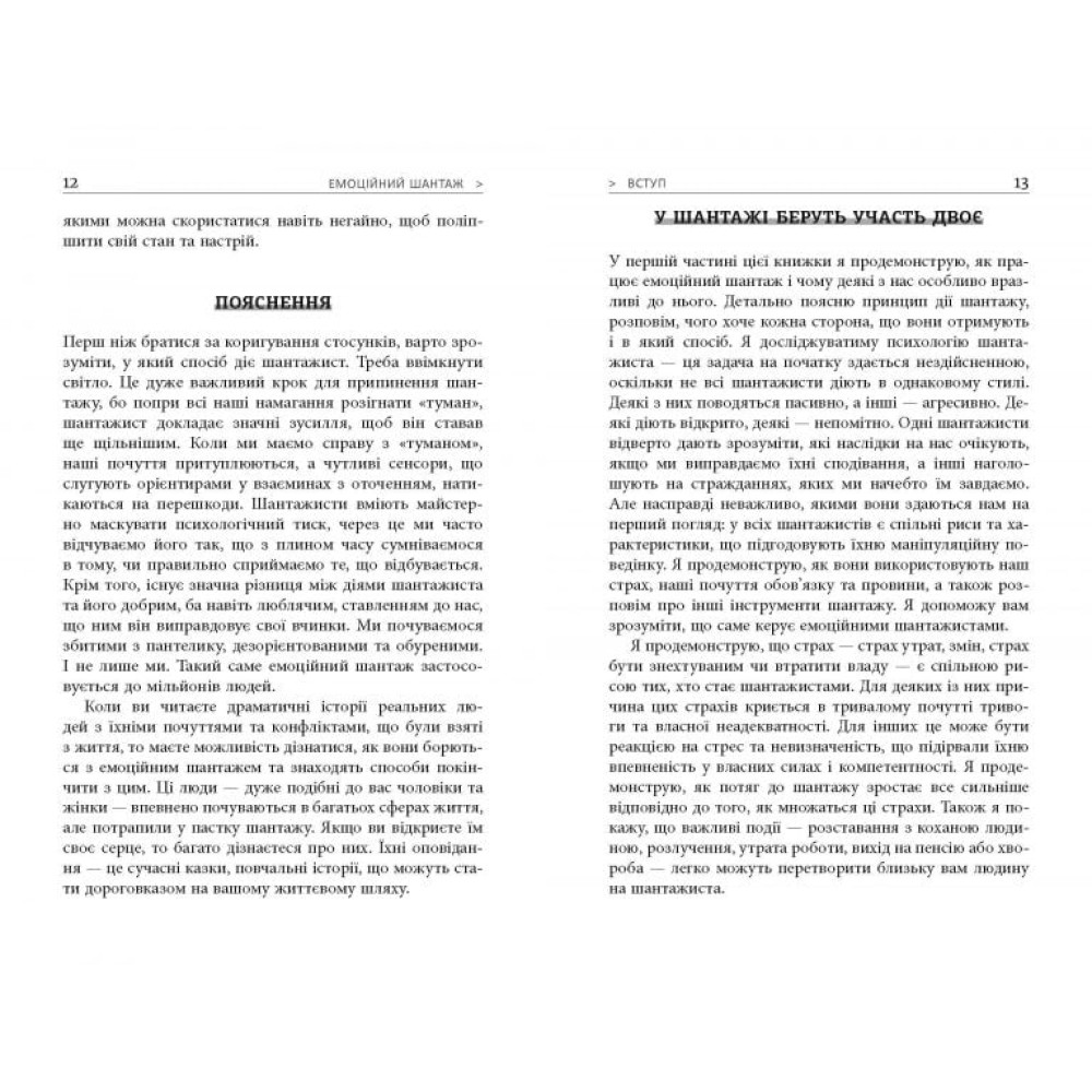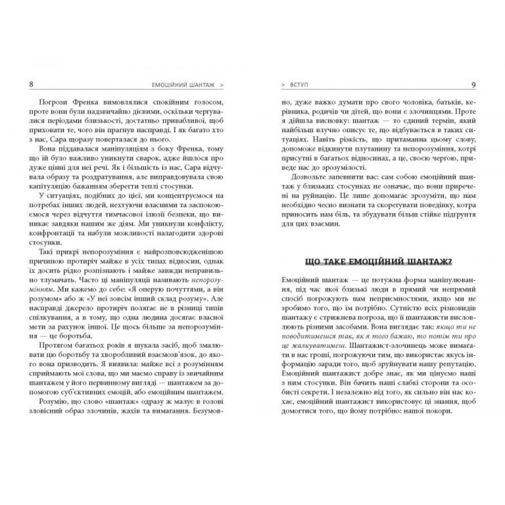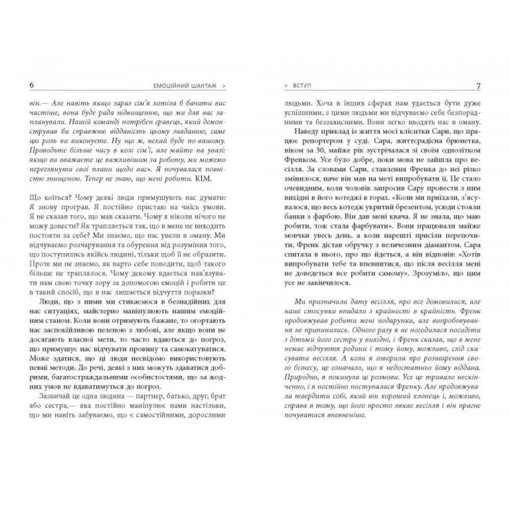 ПРО КНИГИЯк зберегти й покращити стосунки з близькими, рідними та друзями. Як відновити власну цілісність? Як позбавитися комплексу вини? Як не даті маніпулювати собою? Як не стати жертвою емоційного шантажиста? Як протидіяти емоційному шантажу і що це взагалі таке? Відповіді на ці та безліч інших запитань щодо людських взаємин, а також ефективні спосібі розв'язків язання багатьох житейських проблем ви знайдете в чудовій книжці Сьюзан Форвард.ПРО АВТОРАСьюзан Форвард – доктор філософії, всесвітньо відома психотерапевтка, викладачка й авторка.Її книги «Чоловіки, що ненавидять жінок, і жінки, які їх кохають», «Токсичні батьки», «Емоційний шантаж» перекладені більш ніж на п'ятому дев'ятнадцять мов.Сьюзан Форвард займається приватною практикою більше 20 років, викладає йі консультує в декількох медичних і психіатричних закладах в Південній Каліфорнії. Вона веде передачі на радіо і телебаченні.Емоційний шантаж. Коли люди з вашого життя використовують залякування, обов'язки та провину, щоб маніпулювати вами