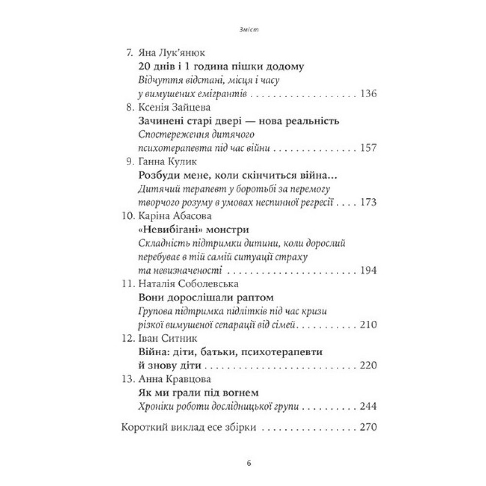 Книга «Гра під вогнем. Історії, робота, спостереження, думки українських психоаналітичних дитячих терапевтів під час війни» є результатом спільної творчості учасників дворічного (2022–2024 рр.) семінару українських дитячих психоаналітичних терапевтів «Гра під вогнем» під керівництвом досвідченої психоаналітикині Анни Кравцової. Тринадцять різних за настроєм, фокусом уваги, літературним стилем та теоретичним підходом есе репрезентують досвід, осмислення, аналіз та яскраві приклади дитячих терапій, які відбувалися і тривають зараз офлайн і онлайн в Україні й за кордоном в умовах незламного спротиву країни воєнній агресії РФ. До збірки увійшли роботи психологів і психотерапевтів, які у своїй практиці віддають перевагу психоаналітичному підходу, проте вона призначена для широкого кола читачів, особливо тих, хто так чи інакше піклується про дітей і спілкується з ними: народжує, виховує, навчає, лікує, товаришує, допомагає і просто живе поряд.