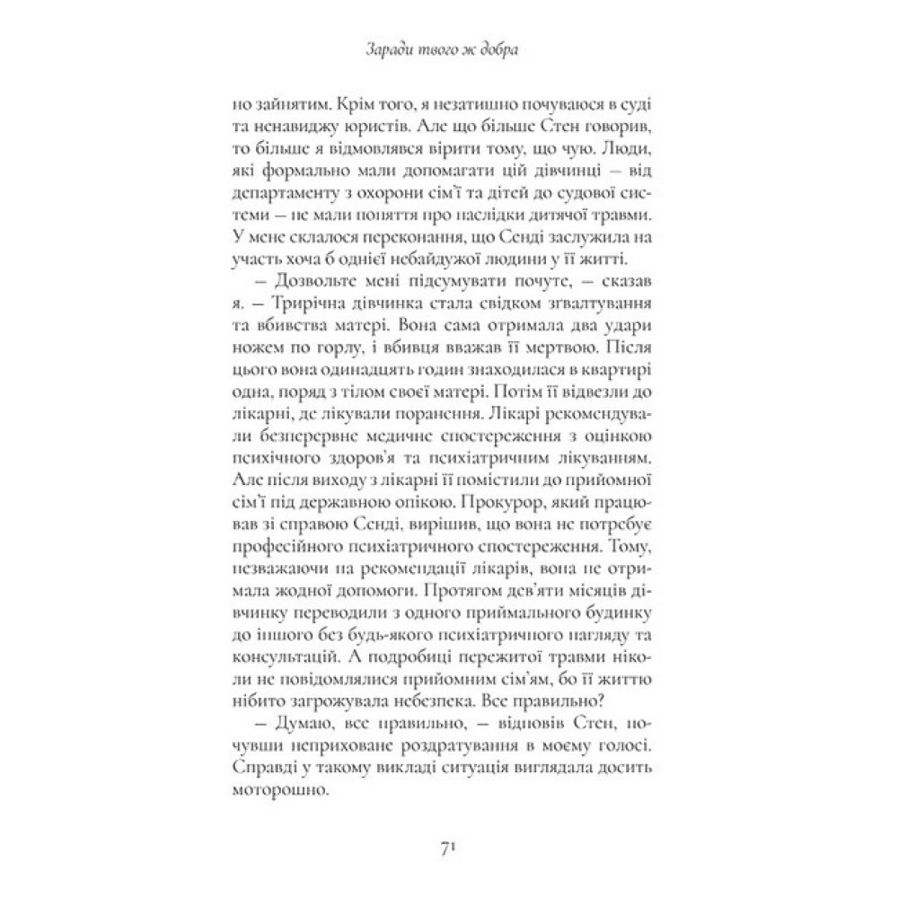 Нове видання світового бестселера про дитячу травму, перекладено 27 мовами. Відомий психіатр Брюс Перрі розповідає десять історій своїх маленьких пацієнтів, які пережили страшні потрясіння: стали жертвами фізичного чи сексуального насильства, свідками вбивств, вихованцями сект чи пережили геноцид. Випадки з його практики та багаторічні наукові дослідження доводять, що психологічні травми мають колосальний вплив на розвиток дитини та її психіку, і діти нічого не забувають, як вважали фахівці раніше. Але своєчасна та професійна допомога може повернути таких дітей до нормального життя та дозволити їм вирости психологічно здоровими. У своїй книзі доктор Перрі розкриває дивовижні здібності мозку та психіки до відновлення та дарує надію на зцілення.