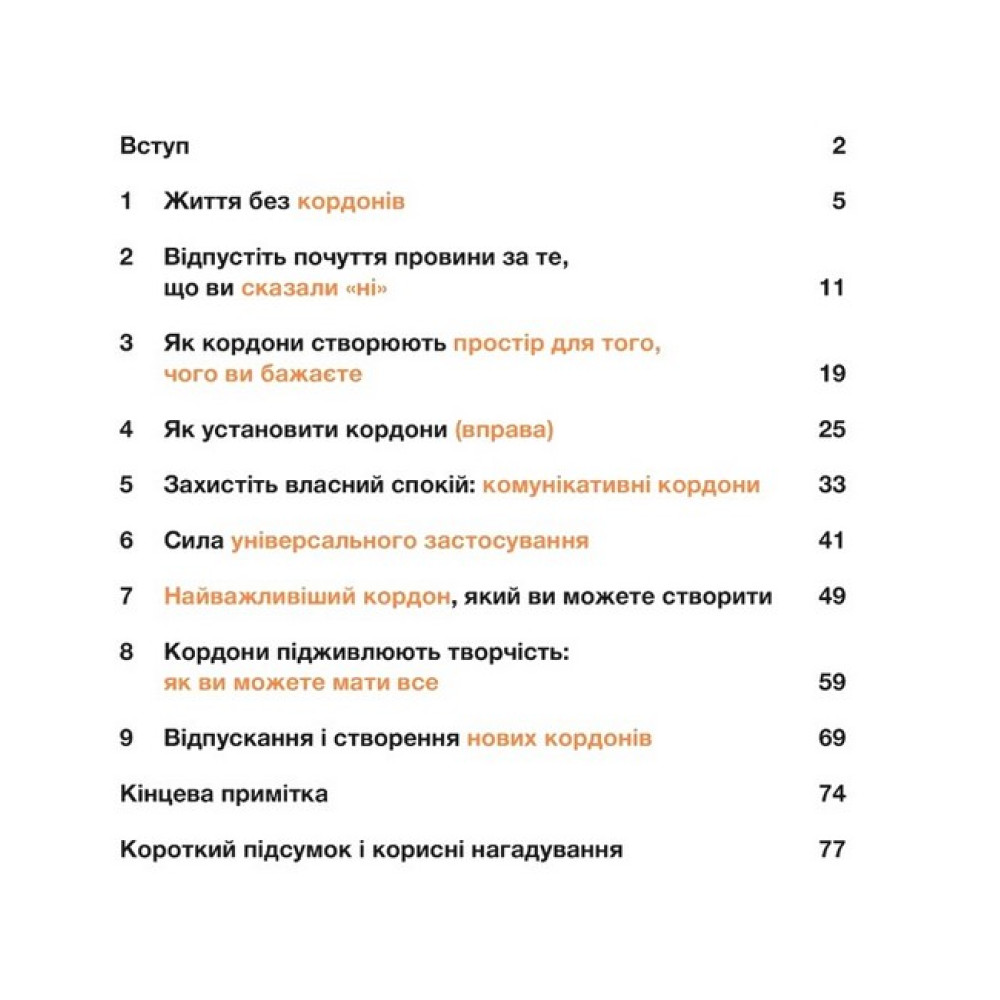 Ми страждаємо не через події у нашому житті, а через те, як на них реагуємо. Кожен особистий кордон, який ми встановлюємо, допомагає створити простір для інших реакцій і поведінки, коли ми стикаємося з тією ж ситуацією, яка змушує нас страждати. Простір, який ми створюємо всередині себе, є для нас джерелом безмежних можливостей вибору спокою і нового життєвого досвіду. Книжка Джозефа Нгуєна «Кордони = Свобода. Як створити кордони, які звільнять тебе без почуття провини» написана для того, аби допомогти вам навчитися створювати такий простір, щоб у вашому житті завжди було місце для любові та радості попри все, що відбувається. Прочитавши цю книжку, ви дізнаєтеся: Як сказати «ні», не відчуваючи провини. Як мирно повідомити про свої кордони так, щоб інші зрозуміли. Як навчитися правильно розчаровувати інших так, щоб на вас не вплинуло те, що вони думають про вас. Як створити кордони, які не дозволяють вам вигорати. Як зберігати спокій, хай би що відбувалося у вашому житті. Що є найважливішим кордоном, який змінює життя і дозволяє зупинити негативне мислення.
