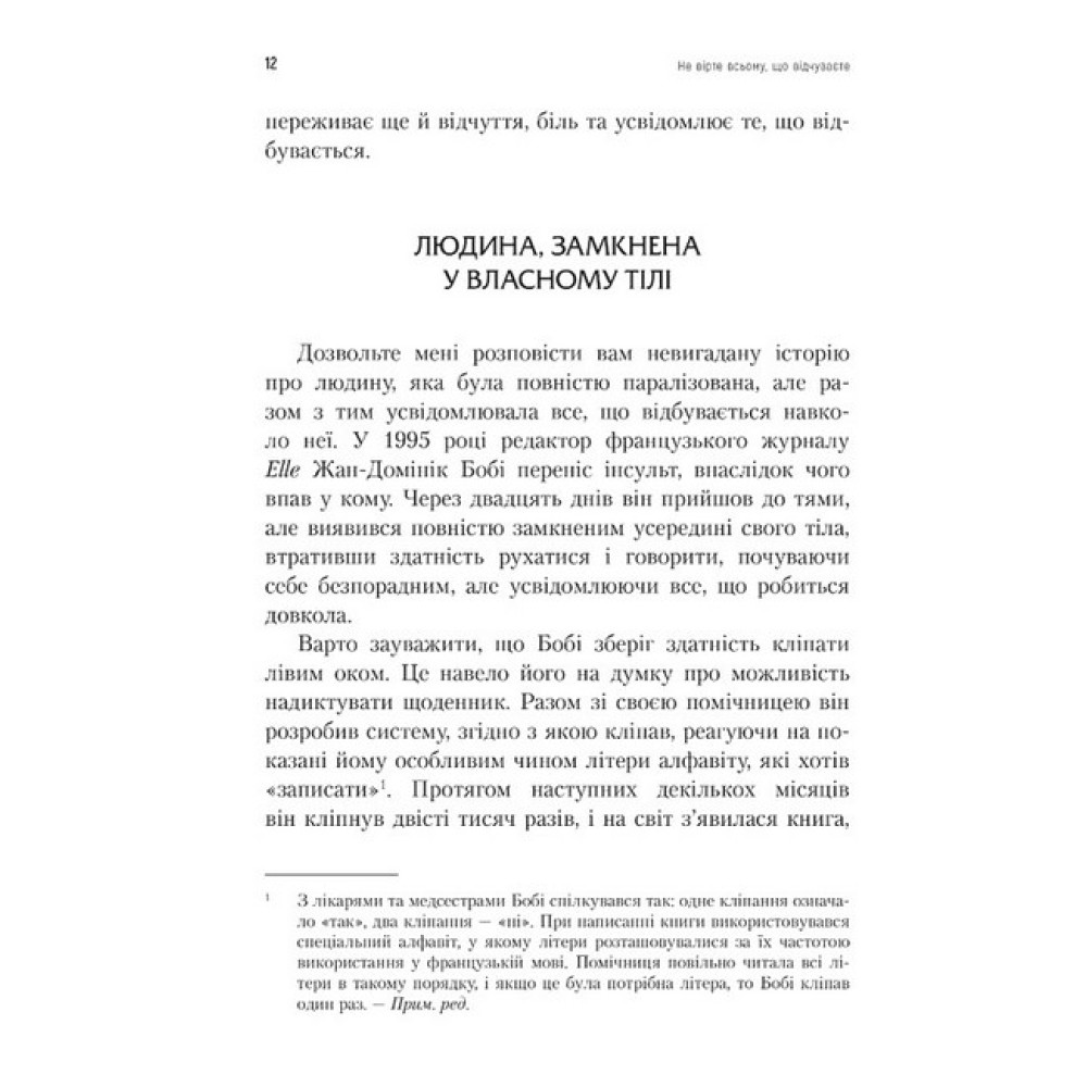 Немає такого поняття, як «погані» емоції. Емоції — це природна і необхідна частина людського існування. Але якщо ви здебільшого відчуваєте смуток, гнів або тривогу, то вам необхідно знайти баланс. Відомий психолог Роберт Л. Ліхі пропонує у книзі «Не вірте всьому, що відчуваєте. Як визначити свої емоційні схеми і звільнитися від тривоги та депресії» новаторський підхід, що поєднує когнітивно-поведінкову терапію і терапію емоційних схем, аби допомогти вам насамперед дослідити та зрозуміти ваші переконання щодо емоцій, визначити, корисні чи шкідливі ці переконання, і знайти мотивацію для прийняття альтернативних, більш здорових стратегій подолання труднощів. Кожен розділ книги містить вправи, які допоможуть вам продуктивніше керувати власними емоціями. Тож ви зможете не лише навчитися краще розуміти, що відчуваєте, а й сформувати навички, які допоможуть впоратися зі своїми емоціями, щоб жити повноцінним, осмисленим життям. Адже саме те, як ми справляємося з важкими емоціями, розкриває нашу справжню здатність до щастя, любові та радості. Роберт Л. Ліхі — доктор філософії, директор Американського інституту когнітивної терапії у Нью-Йорку. Роберт Ліхі обіймає посаду професора клінічної психології на кафедрі психіатрії Медичного коледжу Вейл Корнелл. Він був президентом таких відомих професійних організацій, як Міжнародна асоціація когнітивно-поведінкової терапії, Асоціація поведінкової і когнітивної терапії та Академія когнітивної та поведінкової терапії. Роберт Ліхі є лауреатом премії Аарона Т. Бека від Академії когнітивної та поведінкової терапії. Його книги перекладені 21 мовою.