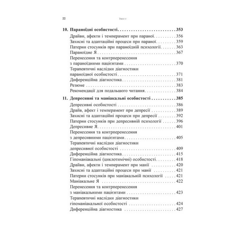 «Психоаналітична діагностика. Розуміння структури особистості в клінічному процесі» Ненсі Маквільямс — це найвідоміший клінічний посібник, що задовольнив ключову потребу в цій галузі вже з моменту першої його публікації. А друге видання «Психоаналітичної діагностики», український переклад якого ви тримаєте в руках, є одним з найкращих підручників із психоаналітичної діагностики особистості. Ненсі Маквільямс робить психоаналітичну теорію особистості та її застосування доступними для практиків із будь-яким рівнем досвіду. Авторка пояснює основні типи характеру й демонструє конкретні способи, за допомогою яких розуміння індивідуальної структури особистості пацієнта може вплинути на спрямування та стиль втручання психотерапевта. Книга містить рекомендації для розробки систематичної, але водночас гнучкої діагностичної формули та її використання для того, щоб інформувати про лікування. «Психоаналітична діагностика» легко читається, у ній наведено велику кількість ілюстративних клінічних прикладів. Ця книга стане незамінним помічником для психоаналітиків, психіатрів, психотерапевтів, психологів-практиків, студентів відповідних спеціальностей. Ненсі Маквільямс — докторка філософії у галузі психології, викладачка Вищої школи прикладної та професійної психології Ратгерського університету (Нью-Джерсі), має приватну практику у Флемінгтоні (Нью-Джерсі), колишня президентка відділу психоаналізу Американської психологічної асоціації, членкиня редакційної колегії часопису Psychoanalytic Psychology. Книги докторки Маквільямс перекладено 14 мовами, вона виступала з лекціями у різних навчальних закладах та інституціях як у США, так і по всьому світу, є лауреаткою багатьох нагород. Докторка Маквільямс є випускницею Національної психологічної асоціації психоаналізу, співпрацює з Центром психоаналізу та психотерапії Нью-Джерсі та із загальнодержавною програмою навчання Національного інституту психотерапії в Нью-Йорку.
