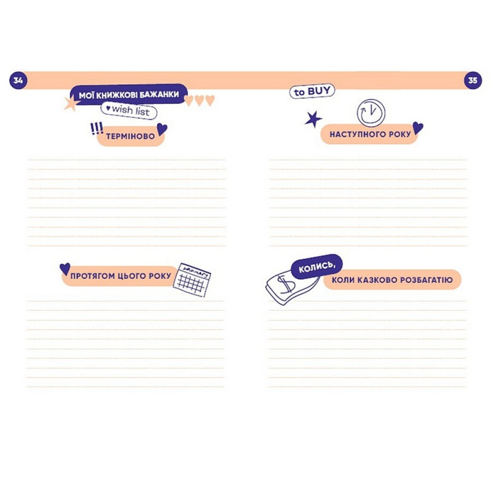 Незамінний помічник для книголюбів і наших reading ambassadors! Обожнюєш читати, відстежуєш усі новинки улюблених видавництв і маєш довжелезний перелік книжкових бажанок? Тоді цей щоденник — для тебе! Занотовуй читацькі враження, досліджуй свої книжкові вподобання, плануй, мрій і розвивайся разом із читацьким щоденником АРТБУКС. Щоденник складається з таких розділів: • Книжкова шафа • Читацький портрет • Книжкові вподобання • Читацькі бажанки • Книжкові челенджі • Читацькі плани • Мої прочитані, недочитані та перечитані книжки • Читацькі підсумки