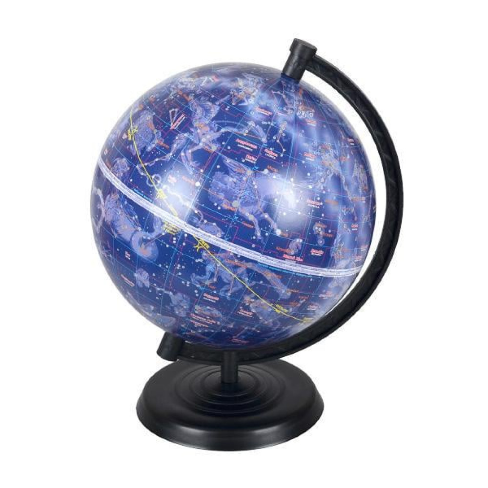 Глобус виготовлений з пластику, зображує зоряне небо. Його діаметр становить 220 мм.
