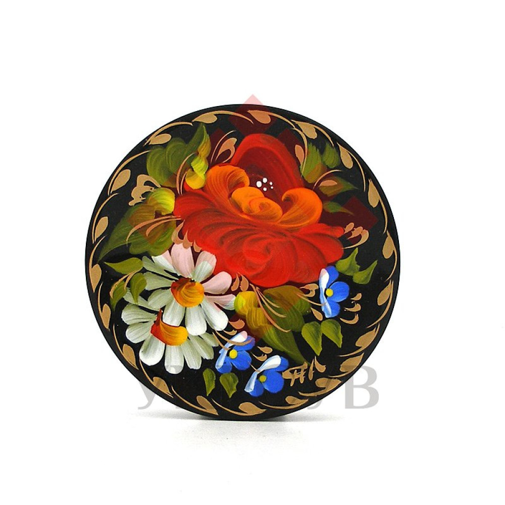 Магніт ручної роботи, розписаний в техніці "Петриківський розпис", авторська робота. Має підпис художника. Матеріал виробу: дерево (МДФ) Фарба для розпису: масло Фінішне покриття: чотири шари глянцевого лаку