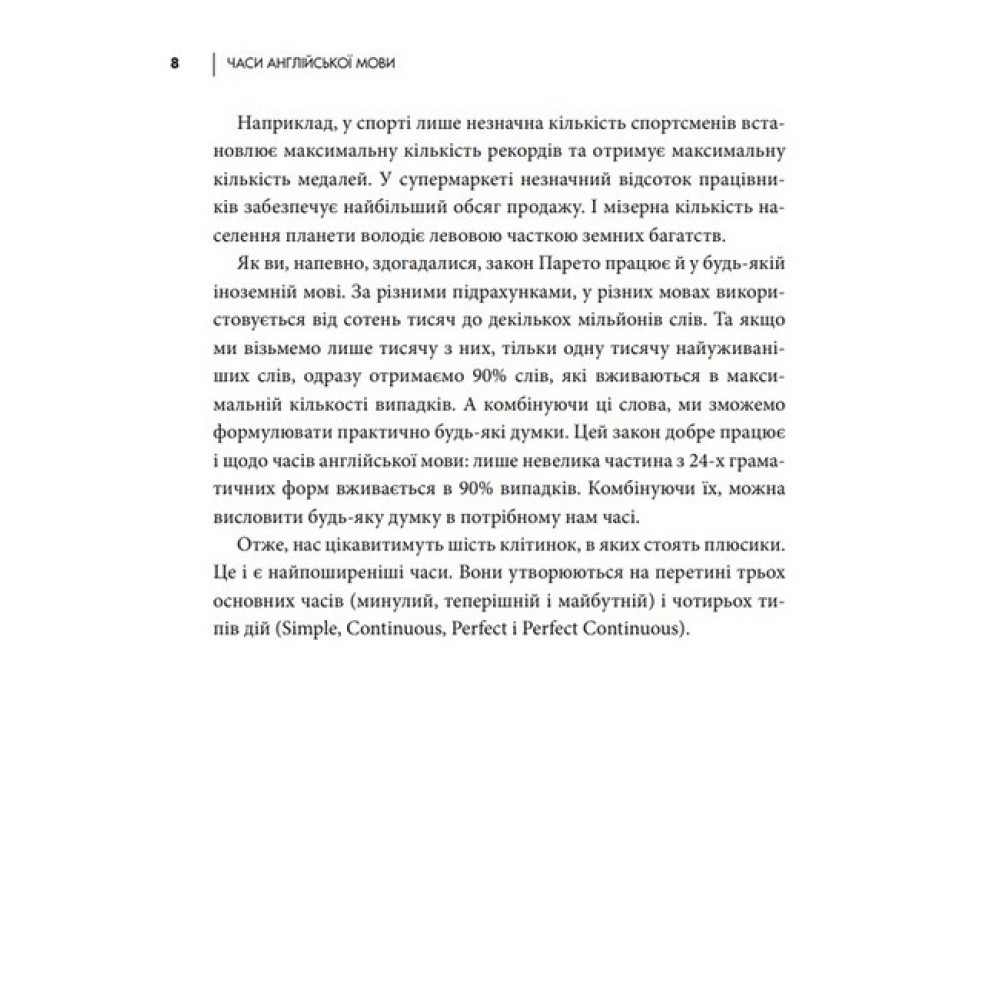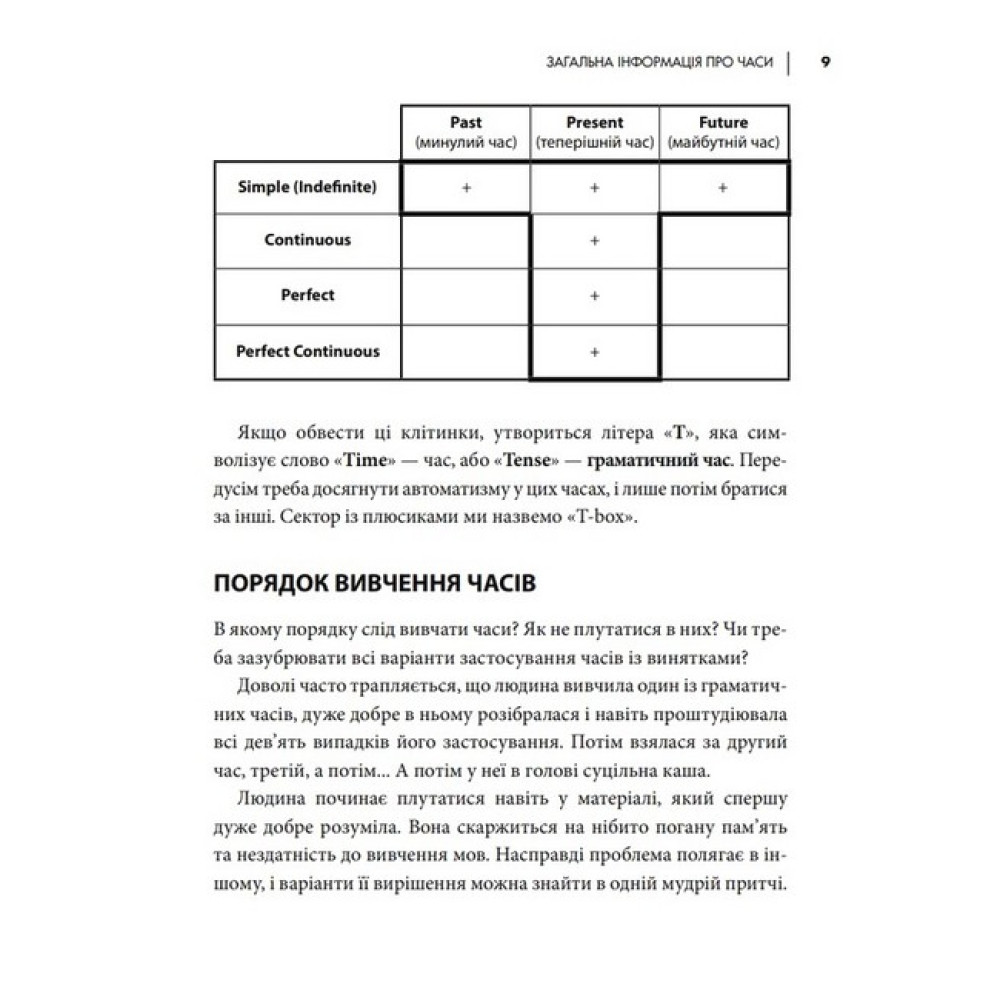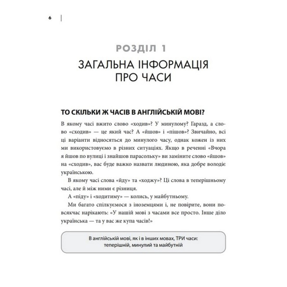 Автор | Олексій Бессонов, Валерія Хургіна Рік 2023 Мова Українська, Англійська Ілюстрації Чорно-білі Жанр Довідкова література, Самовчителі254 ? 279 ?1 людина КупитиВсе про “Часи англійської мови” Від видавця Книжка «Часи англійської мови» про те, як легко і швидко вивчити часи англійської мови. Автори знайшли простий спосіб доступно пояснити всі нюанси: скільки часів в англійській мові, які з них найпопулярніші і як їх застосовувати не замислюючись. Книжка зацікавить як новачків, так і читачів зі знанням англійської середнього рівня. Читачі швидко опанують тему, знайдуть багато корисних фішок та легко зрозуміють логіку утворення часів. Також ця книжка буде корисна і для викладачів, адже в ній докладно описані цікаві техніки, які можна застосовувати на заняттях.Друга частина книжки — практична, — дозволяє не лише перевірити засвоєння матеріалу, а й до автоматизму довести застосування часів англійської мови. Рецензії 0 Всі характеристики ВидавництвоIPIO |