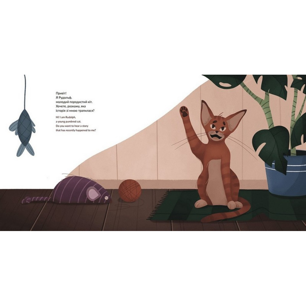 Кіт на ім’я Рудольф живе у добрій люблячій родині. Але не дуже цінує те, що має. Якось він вирішує втекти з дому, щоб провчити батьків. І звичайно ж, його чекають пригоди. А які саме — діти довідаються, прочитавши книжку-білінгву Тетяни Гординчук українською та англійською мовами. QR-код на обкладинці веде до мобільного застосунку, в якому діти зможуть послухати професійно озвучену історію про Рудольфа, а ще — розмалювати героїв та в інтерактивній формі вивчати нові слова.