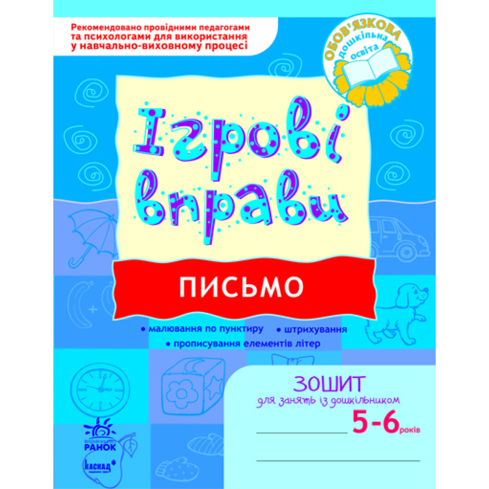 Нова редакція. Державний стандарт 2021 рік Зошит Ігрові вправи. Письмо (Мовлення, грамота Логіка, пам'ять, увага Письмо, Математика) для занять із дошкільником 5—6 років є частиною комплекту, спрямованого на комплексну підготовку дитини до вступу у 1 клас. Ефективна структура, доцільні умовні позначки, ігровий та багатоплановий характер вправ — ті відмінні особливості зошита, які сприяють правильній організації процесу підготовки. А цікаві вправи, веселі малюнки формують інтерес дошкільника до майбутнього навчання.