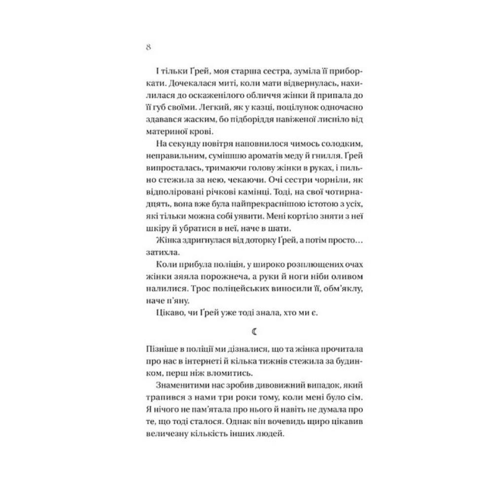 Сестри Голлоу — неймовірно вродливі, гламурні та лякаюче дивні. Навколо Ґрей, Віві та Айріс відбуваються темні й незрозумілі речі. Все почалося кілька років тому, коли дівчата зникли з вулиці Единбурга, а за місяць раптово повернулися. Сестри не можуть пригадати, що саме сталося, але це лишило у кожної з них однаковий слід у формі півмісяця під горлом. Вони разюче змінилися після того випадку — колись темнокосі блакитноокі сестрички тепер мали волосся молочного кольору та моторошні чорні очі. Дівчата мають неймовірний апетит, але не набирають вагу. Їхня холодна краса вражає і відлякує водночас. Де вони були? Що з ними сталося?Коли за підозрілих обставин зникає старша сестра, Ґрей, життя 17-річної Айріс стає ще дивнішим: моторошні знахідки, жахливі уривчасті спогади, а ще за нею стежить чоловік з рогами. Вона вирушає слідами зниклої сестри й усвідомлює: єдиний спосіб врятувати Ґрей — розгадати таємницю того, що відбулося з ними в дитинстві. Що ближче дівчина наближається до істини, то більше вона розуміє, що в дитинстві з ними сталося щось насправді жахливе, і старша сестра це приховувала.Книга «Дім Голлоу» — це містичний трилер австралійської авторки Крістал Сазерленд. Краса Ґрей, Віві та Айріс була винятковою, вони мали розкішне темне волосся й блакитні, мов джерельна вода, очі. Та кілька років тому дівчата змінилися: сестри Голлоу раптово зникли, а повернулися зі шрамами-півмісяцями, світлим волоссям і химерними чорними очима. Ніхто, навіть дівчата не знають, що тоді трапилося.Айріс має розгадати цю таємницю: зникла старша сестра Ґрей, а єдиний спосіб врятувати її — дізнатися моторошну правду.
