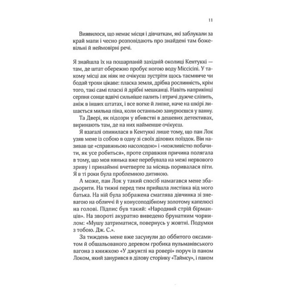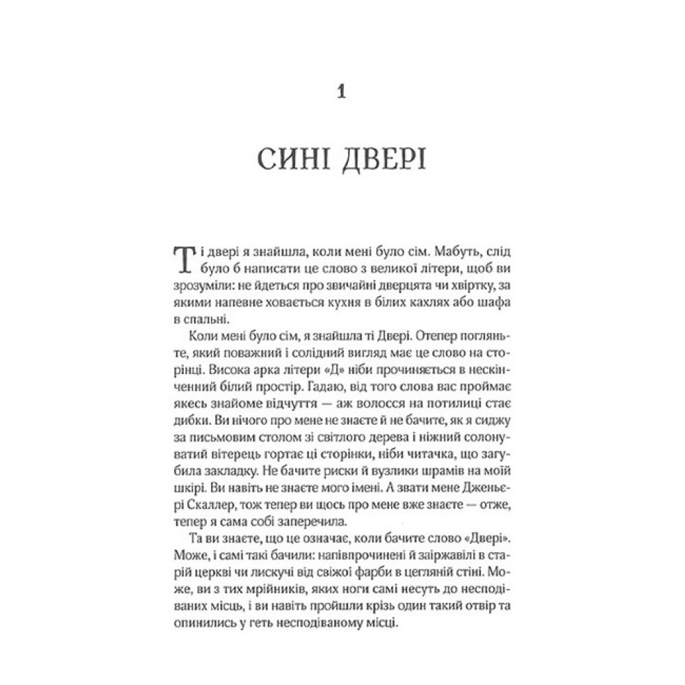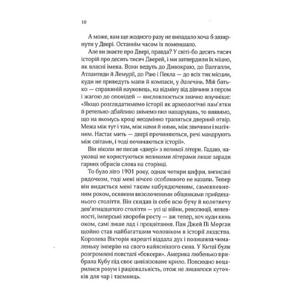 У маєтку пана Лока з безліччю дивних артефактів самотою зростає Дженьєрі. Їй не можна шуміти, а на дозвіллі вона мусить нудитися за переписуванням конторських книг. У Дженьєрі є дивний дар: усе, що вона запише, магічним чином здійснюється, от тільки пан Лок хоче, щоб дівчина полишила такі витівки. Від самоти її рятує загадкова книжка під назвою «Десять тисяч дверей», у якій ідеться про інші світи. Аж раптом Дженьєрі розуміє, що їй загрожує небезпека і що історія в книжці тісно з нею пов’язана. Від цієї миті розпочинається дивовижна подорож крізь час і простір у пошуках загадкових дверей. Однак що справді повинна віднайти Дженьєрі — це саму себе.