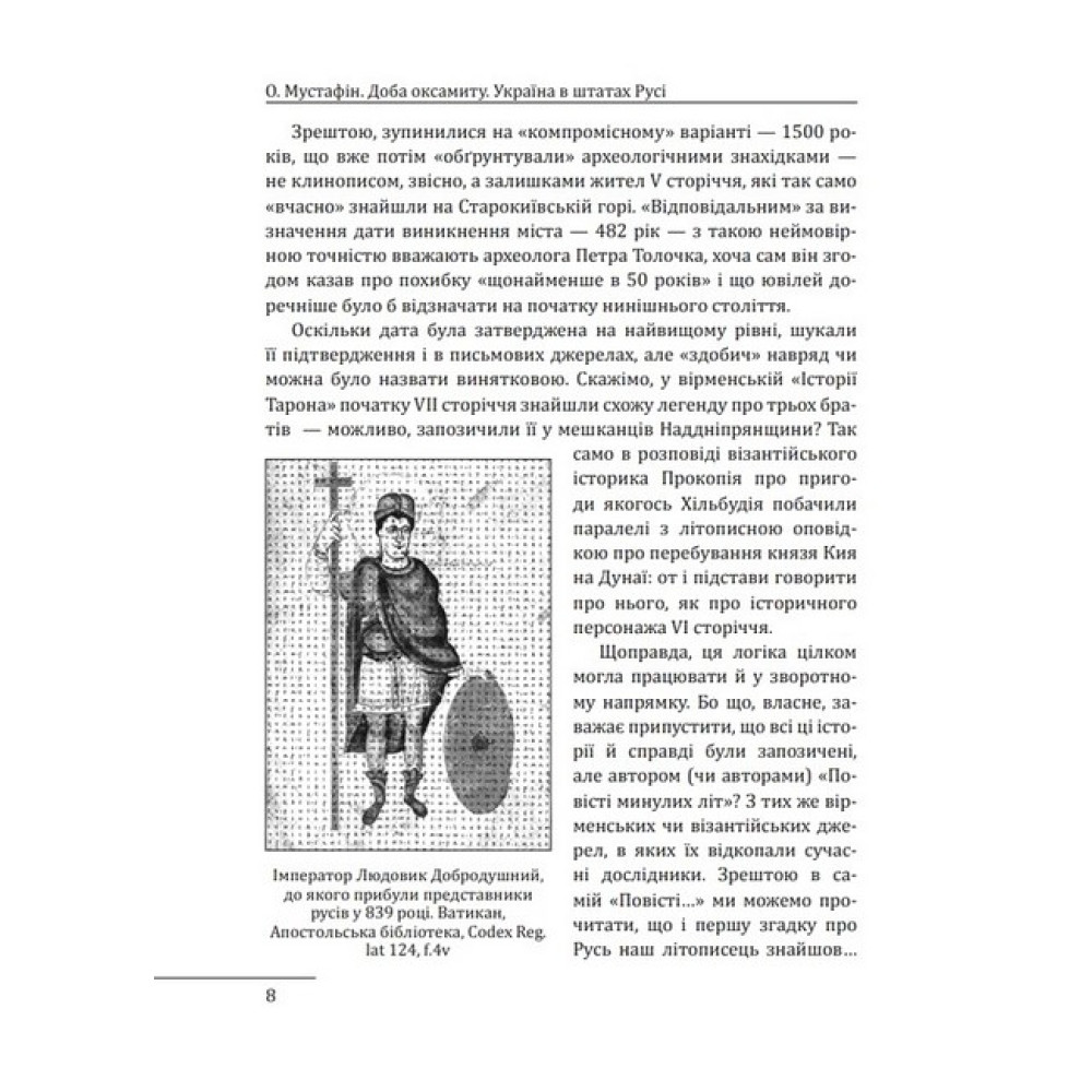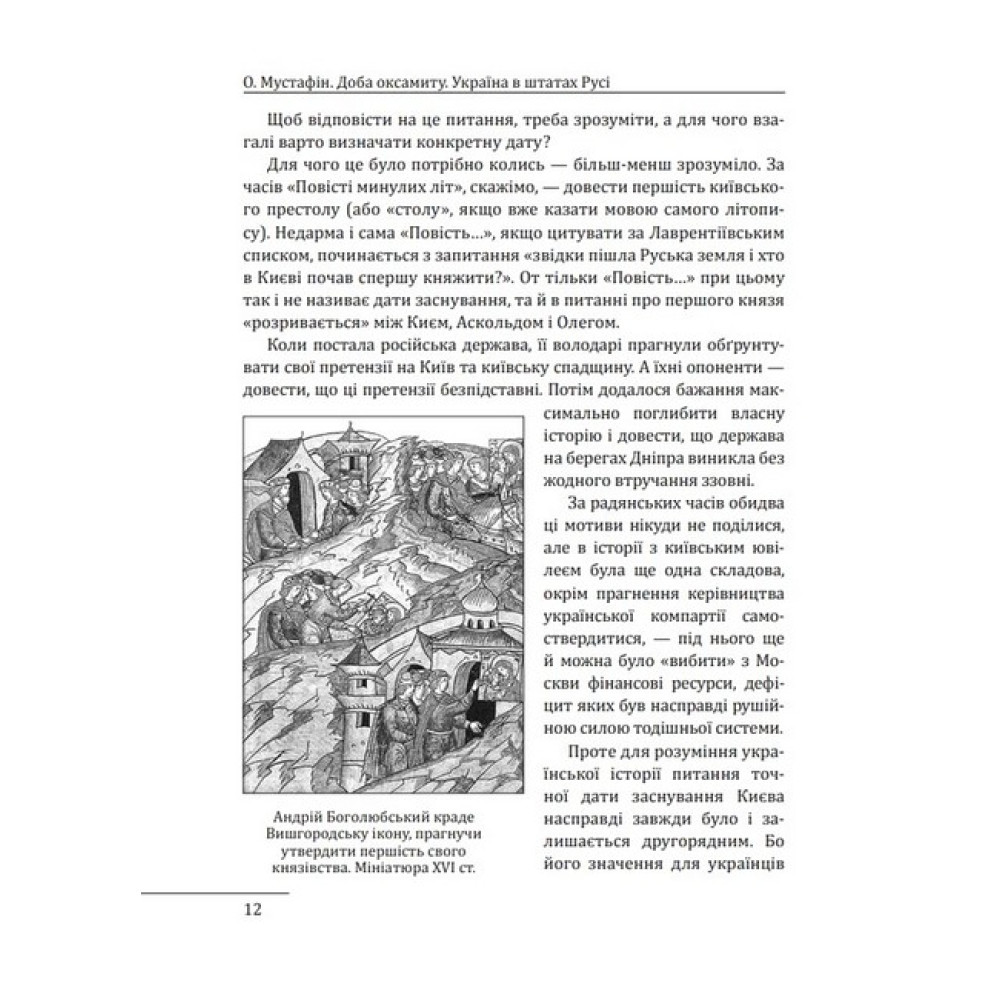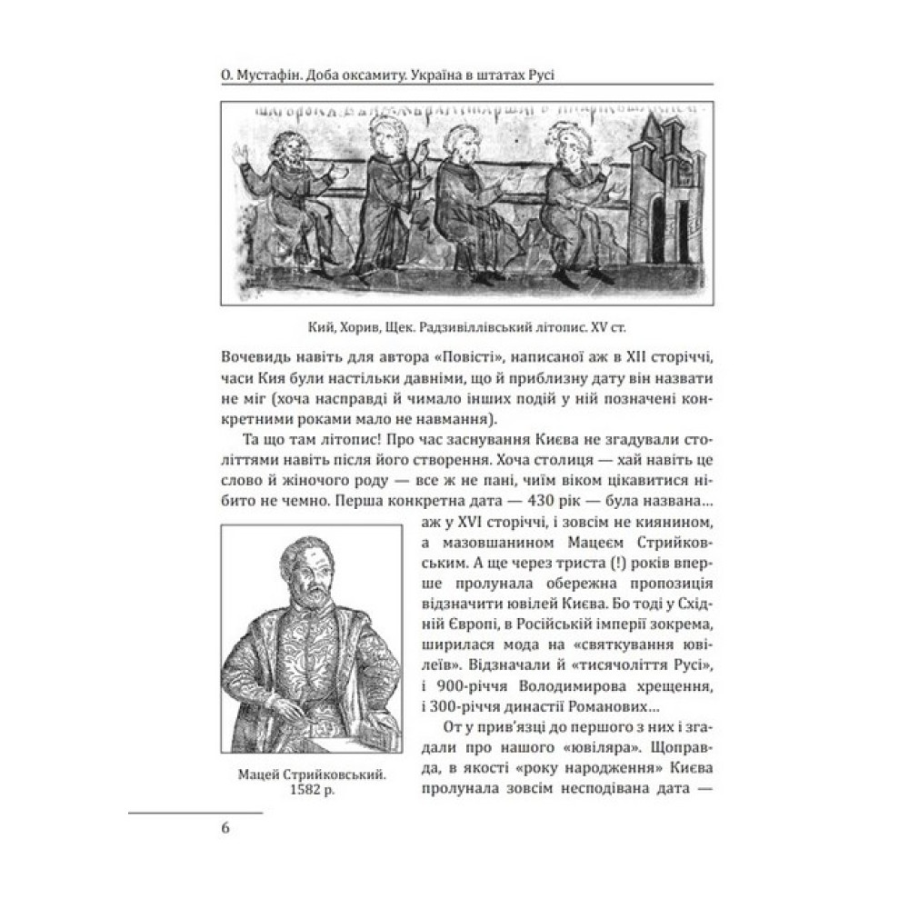 У своїй новій книжці Олексій Мустафін згадує добу, коли нашу країну ще іменували Руссю і правили нею князі та королі, що вбиралися — як і належить середньовічним монархам — в хутро й оксамит. Добу, про яку тривалий час згадували лише «наполовину», адже за радянською версією історії самостійний розвиток держави, заснованої Володимиром та Ярославом, раптово обривався в середині XIII сторіччя, а наступних наших володарів оголошували «загарбниками» та «поневолювачами». Та й українські автори зазвичай більше цікавилися козацтвом та Гетьманщиною — ніби їхня історія не була продовженням історії Русі. Тим цікавіше відкривати ці сторінки нашої минувшини сьогодні — коли Україна повертається до кола європейських народів, в якому перебувала і за часів середньовіччя, і за нового часу. Та й не лише Європою обмежувалися її зв’язки. Адже перший письмовий документ, складений у Києві, був знайдений... в архіві Каїра. Критичний, іронічний, але безумовно зацікавлений погляд на вітчизняну історію пропонує своїм читачам автор.